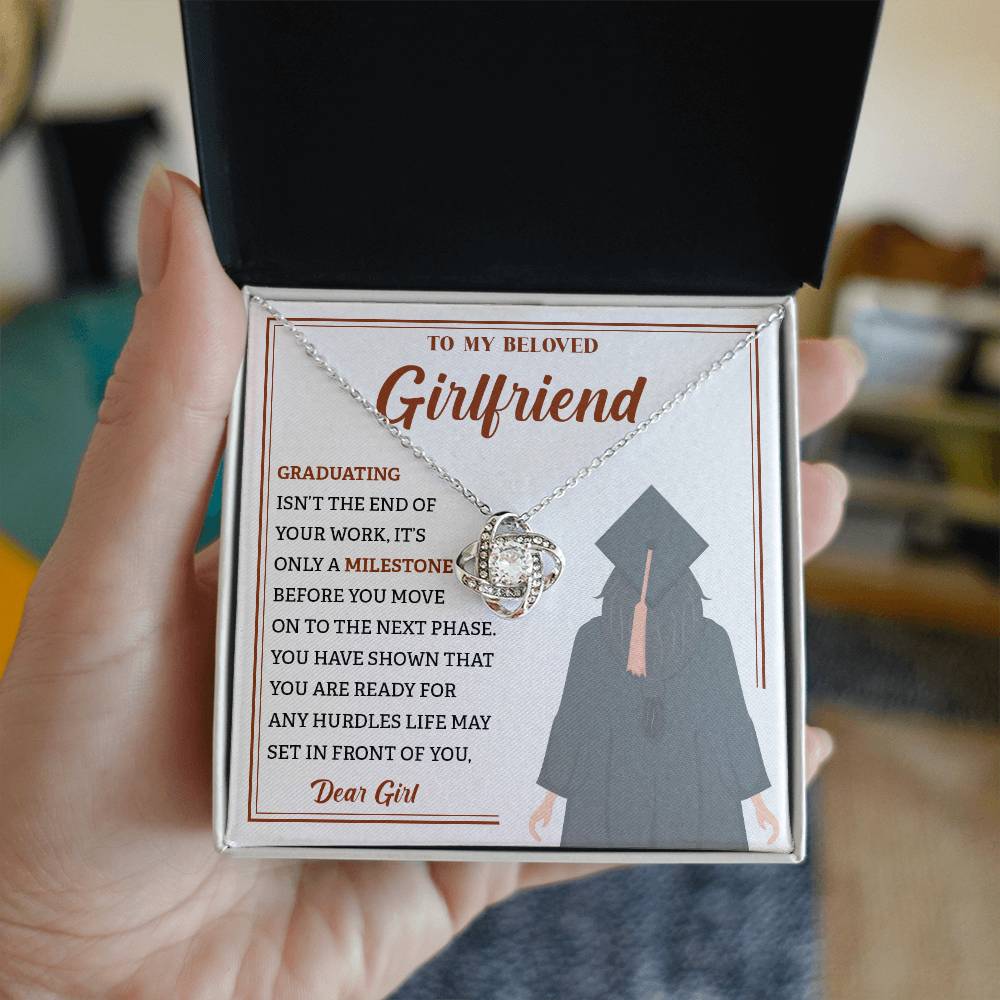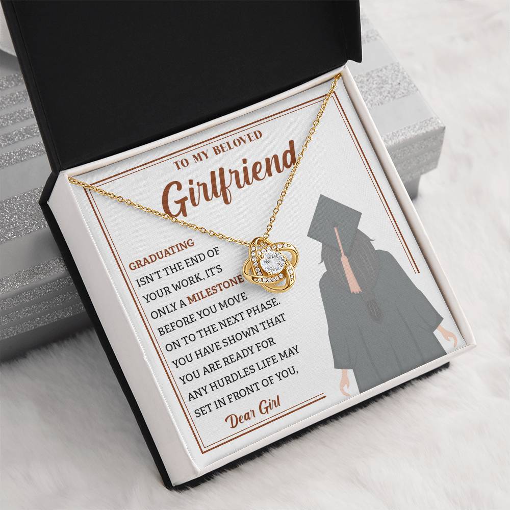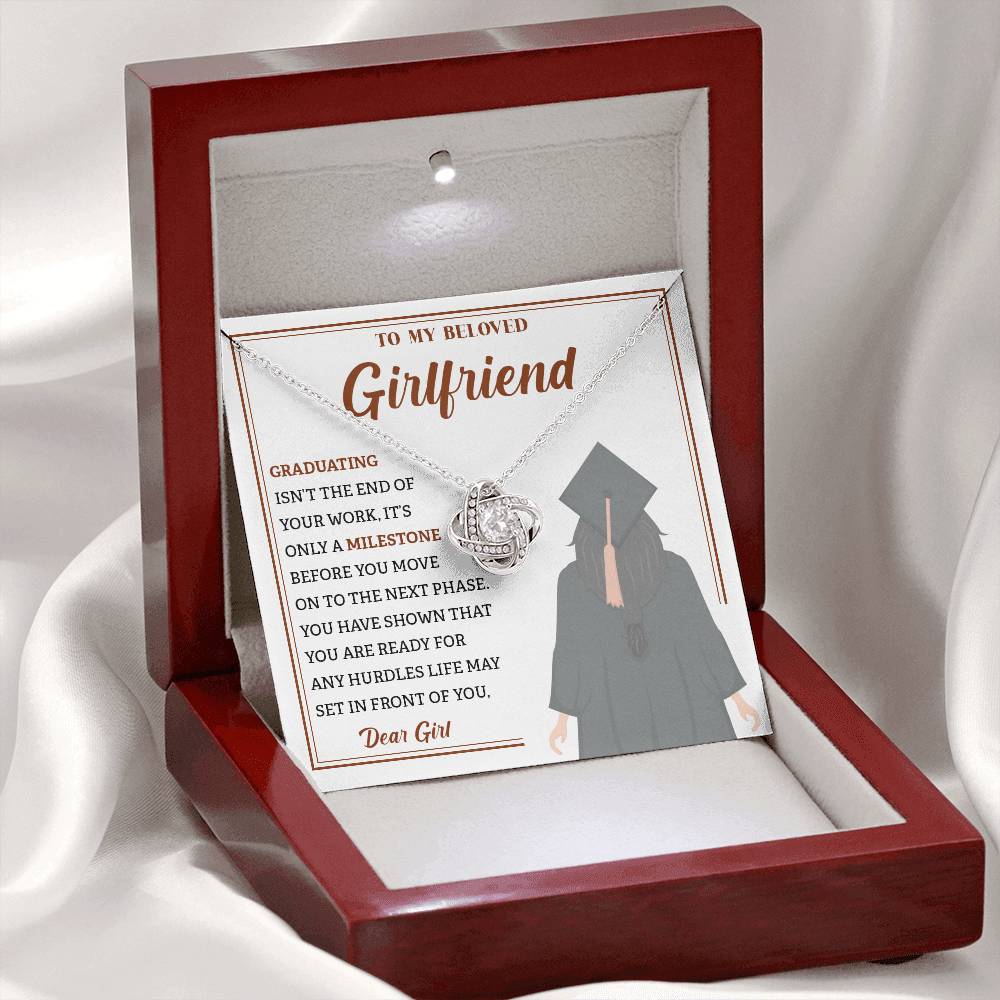 Celebrate your girlfriend’s proudest moment with this stunning graduation necklace. Featuring a sparkling interlocked heart pendant and a heartfelt message card, this keepsake is designed to remind her that this is only the beginning of her journey. Whether she’s finishing high school, college, or grad school, this gift will mark her milestone with elegance and love.