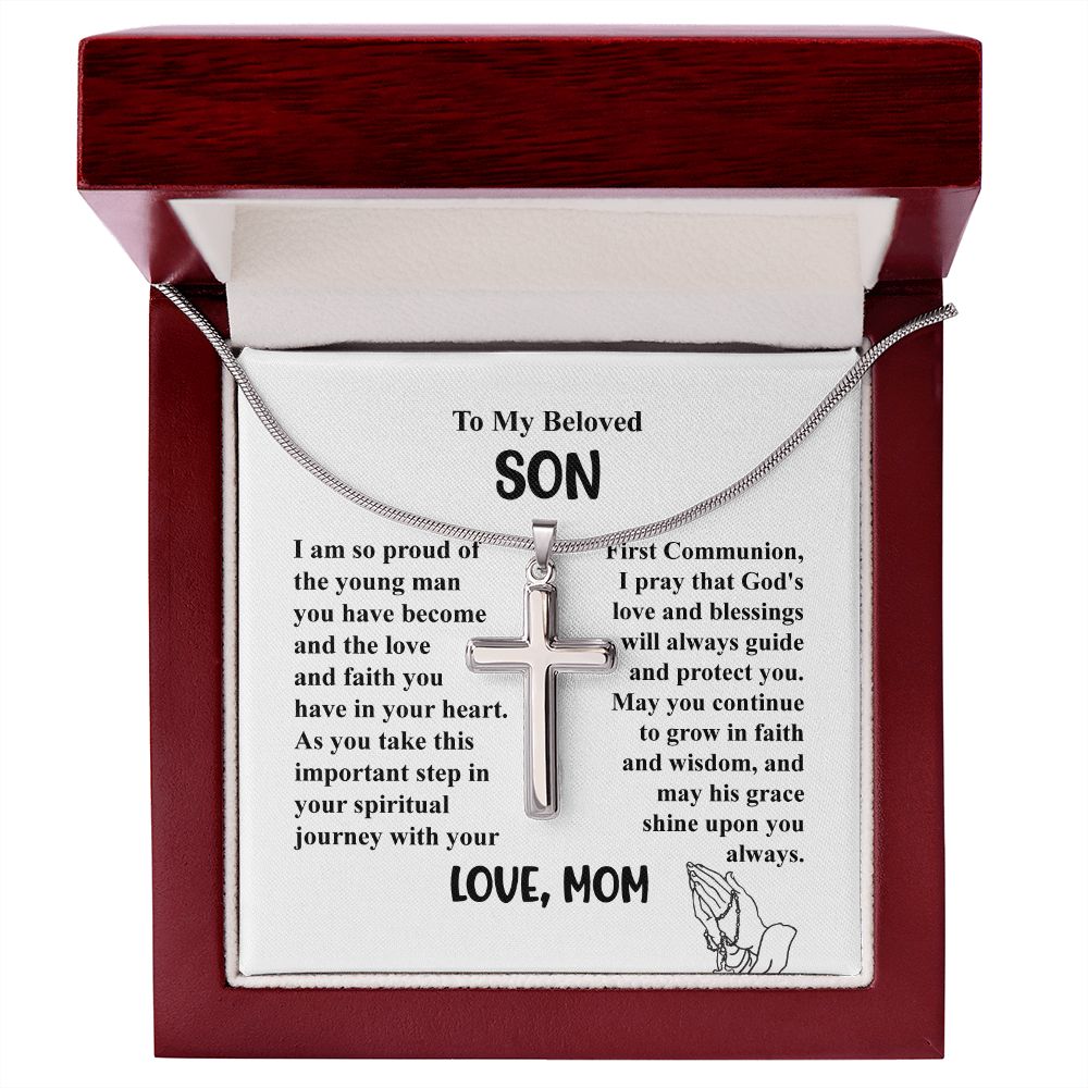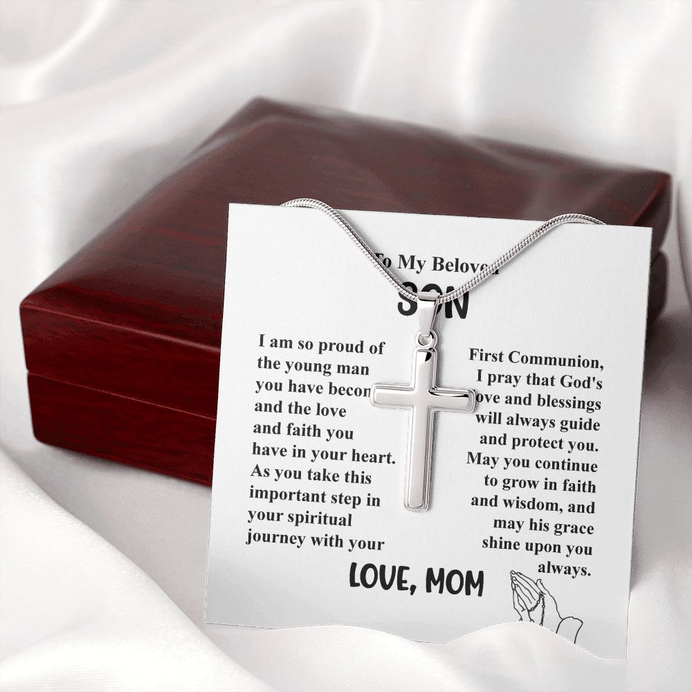 To My Beloved Son I am So Proud of The Young Man - Cross Necklace Gifts From Mom With Beautiful Message