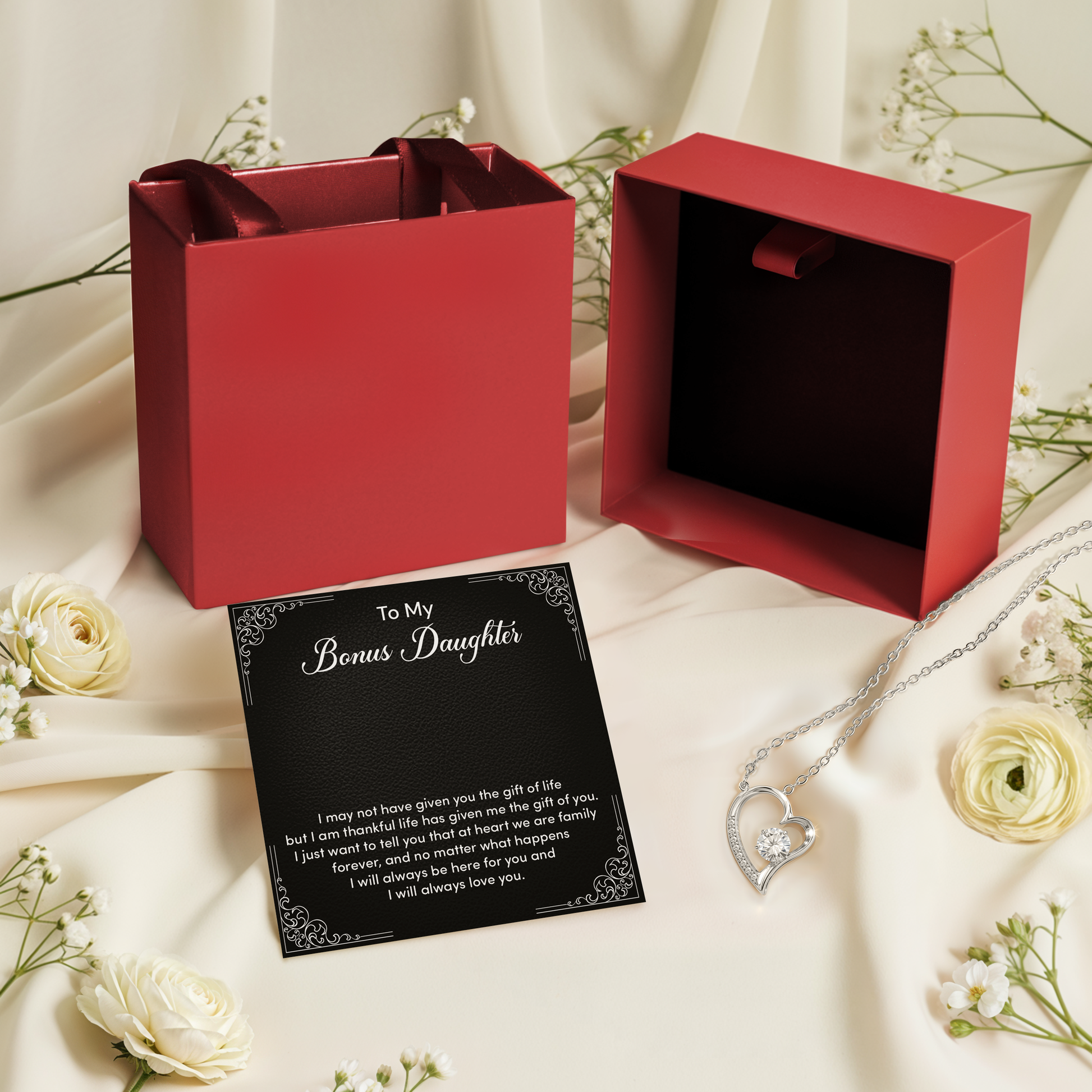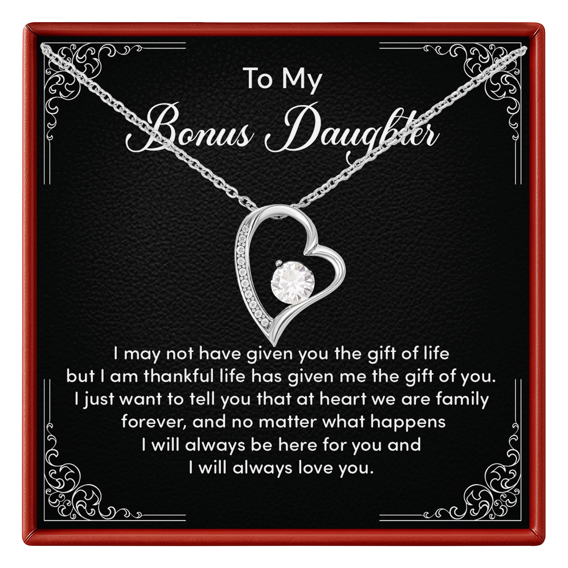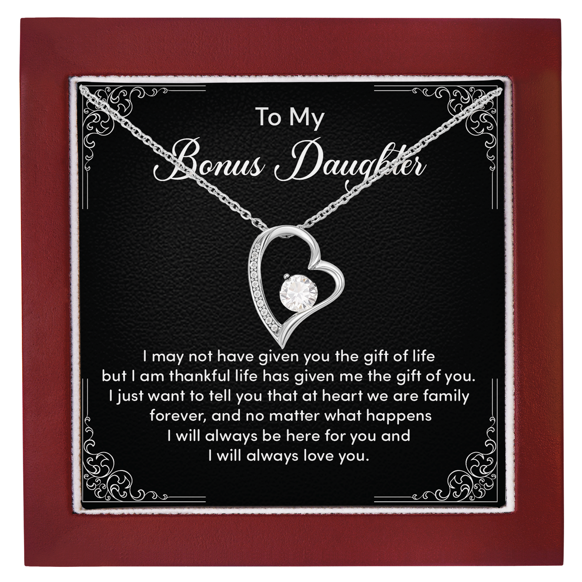 Bonus Daughter Necklace from Stepmom or Stepfather - Heart Shaped Crystal Pendant Gift