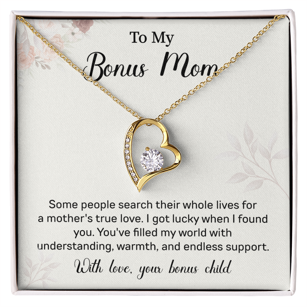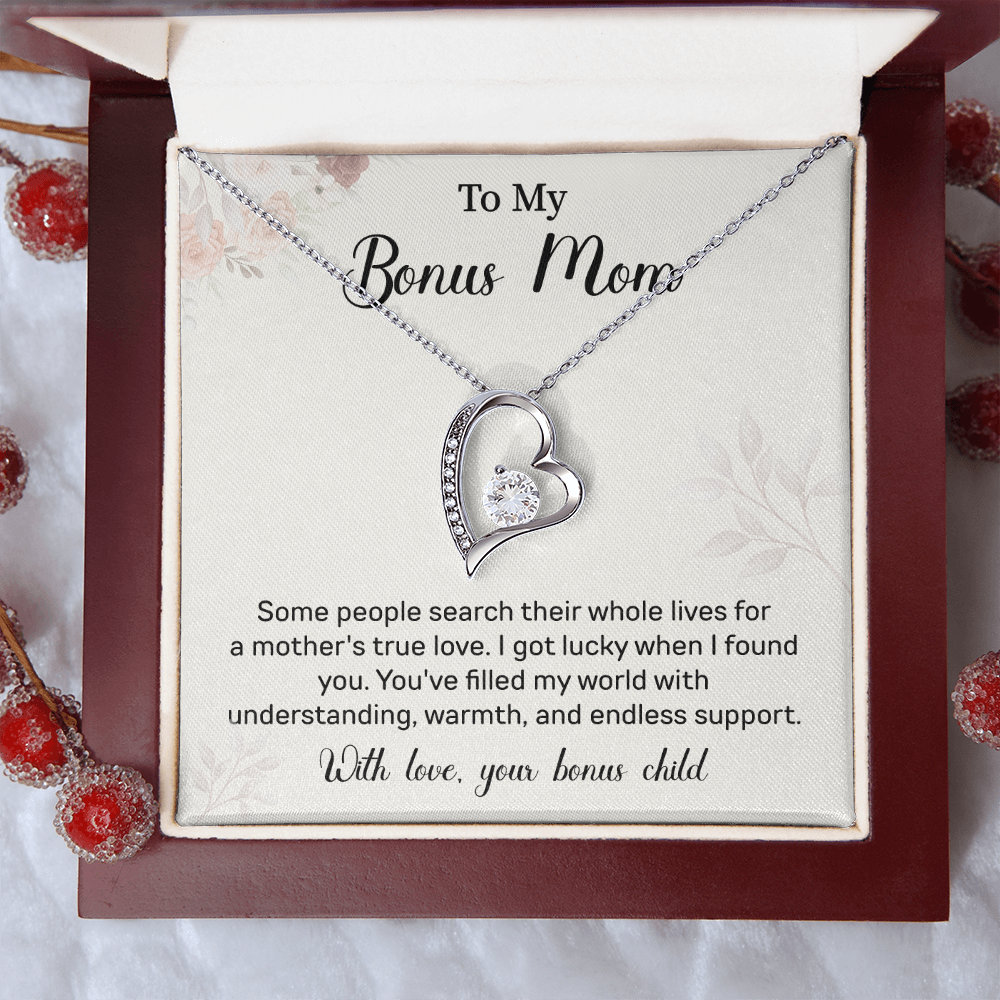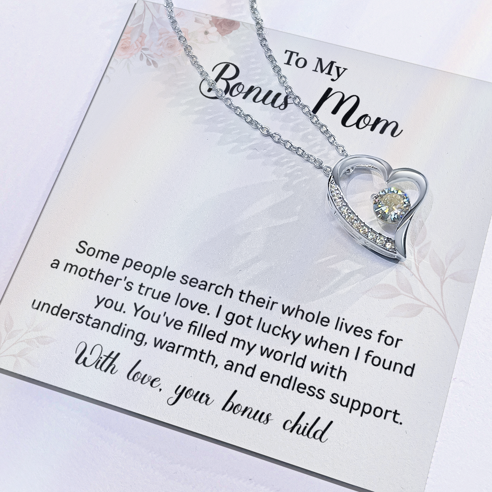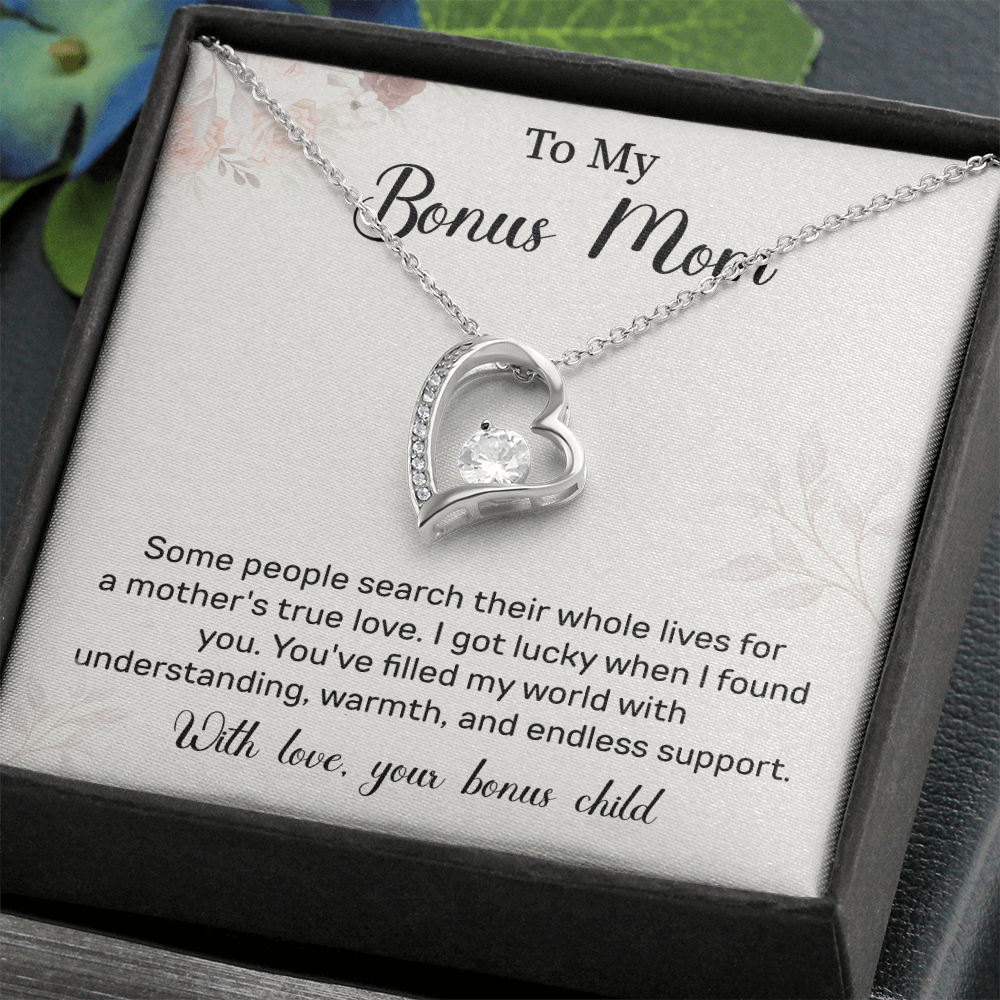 Celebrate your amazing bonus mom with this heartfelt "To My Bonus Mom" Necklace. Featuring an elegant heart pendant and a beautiful message card, this gift honors the special bond you share.
