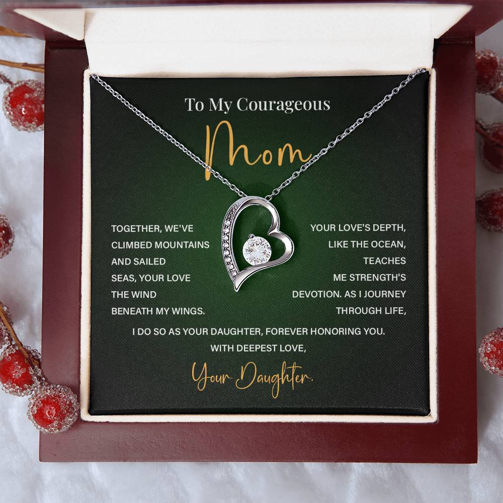 Heart Necklace for Brave Mom – From Daughter with Poetic Message Card