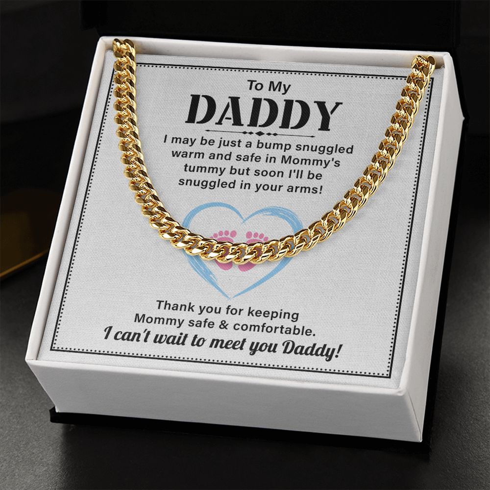To My Daddy, I Can't Wait To Meet You Daddy, Lovely Necklace & Message Card From Children, Cuban Link Chain For Man