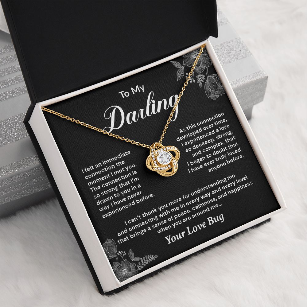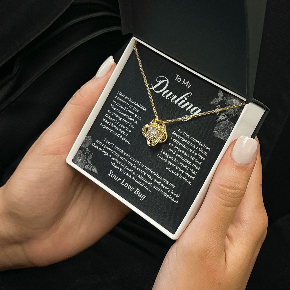Imagine her reaction receiving this beautiful Love Knot Necklace. Representing an unbreakable bond between two souls, this piece features a beautiful pendant embellished with premium cubic zirconia crystals. Surprise your loved one with this gorgeous gift today!