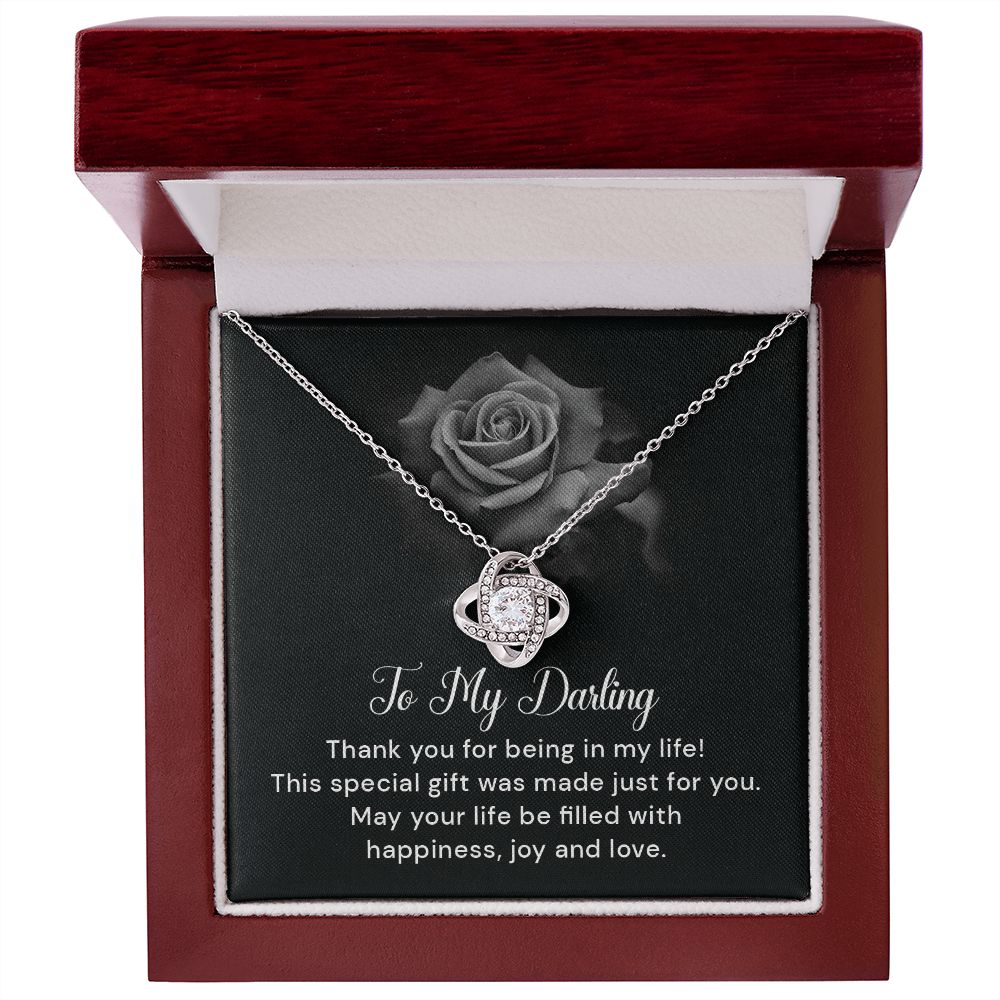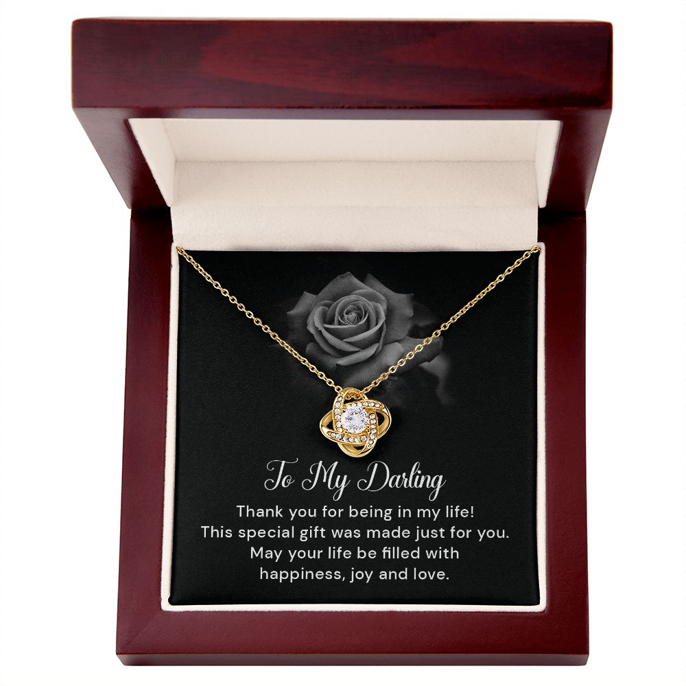 Imagine her reaction receiving this beautiful Love Knot Necklace. Representing an unbreakable bond between two souls, this piece features a beautiful pendant embellished with premium cubic zirconia crystals. Surprise your loved one with this gorgeous gift today!