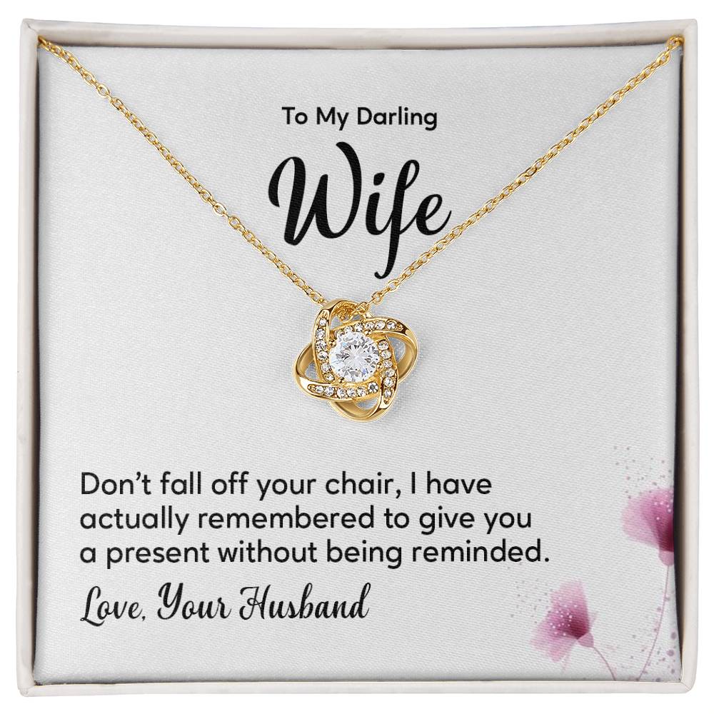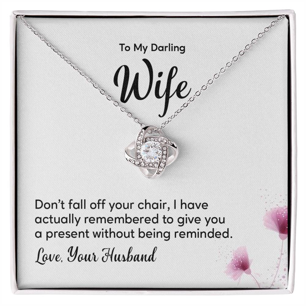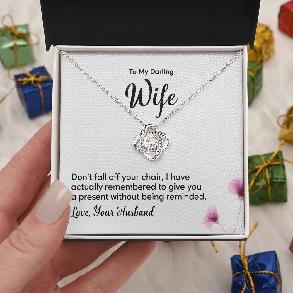 Thrill your wife with a funny turn on romance! This humorous wife gift is a smile-inducing surprise that includes a glittering pendant and a funny message card that will make her laugh out loud, it is a great gift idea to give to a wife on a birthday or anniversary, or simply because you want to.
