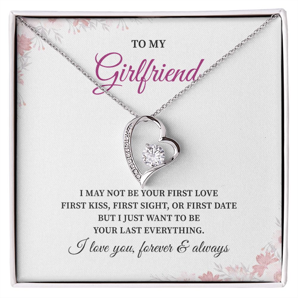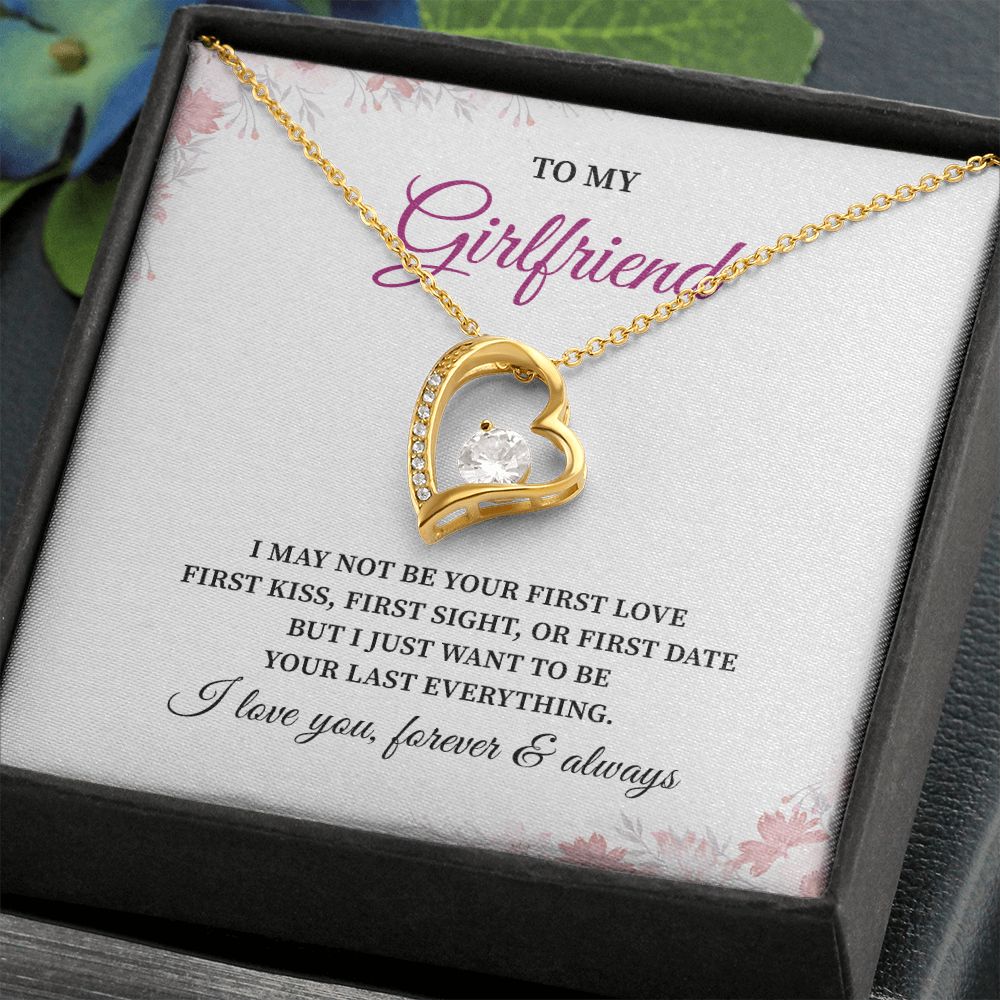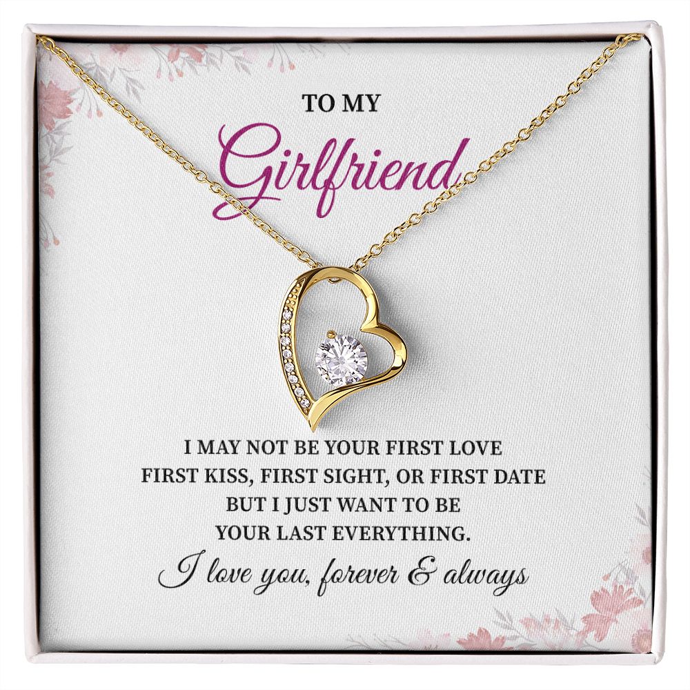 The dazzling Forever Love Necklace is sure to make her heart melt! This necklace features a stunning 6.5mm CZ crystal surrounded by a polished heart pendant embellished with smaller crystals to add extra sparkle and shine. Beautifully crafted with either a white gold or yellow gold finish, be sure to give her a classic gift she can enjoy everyday.