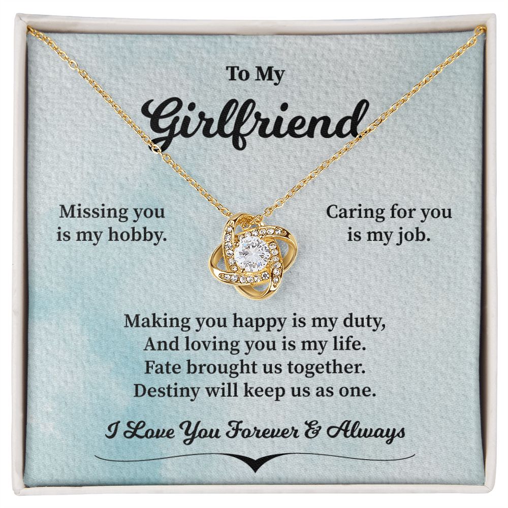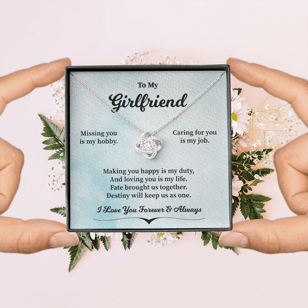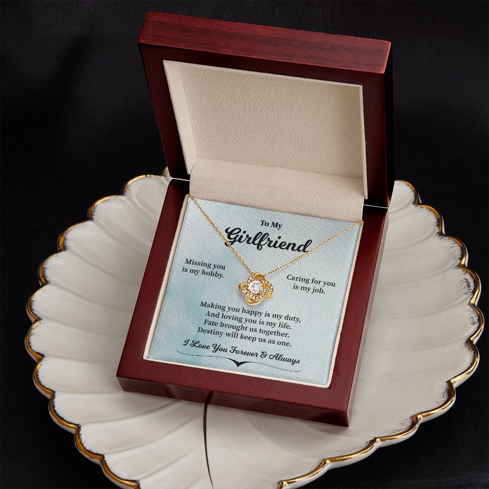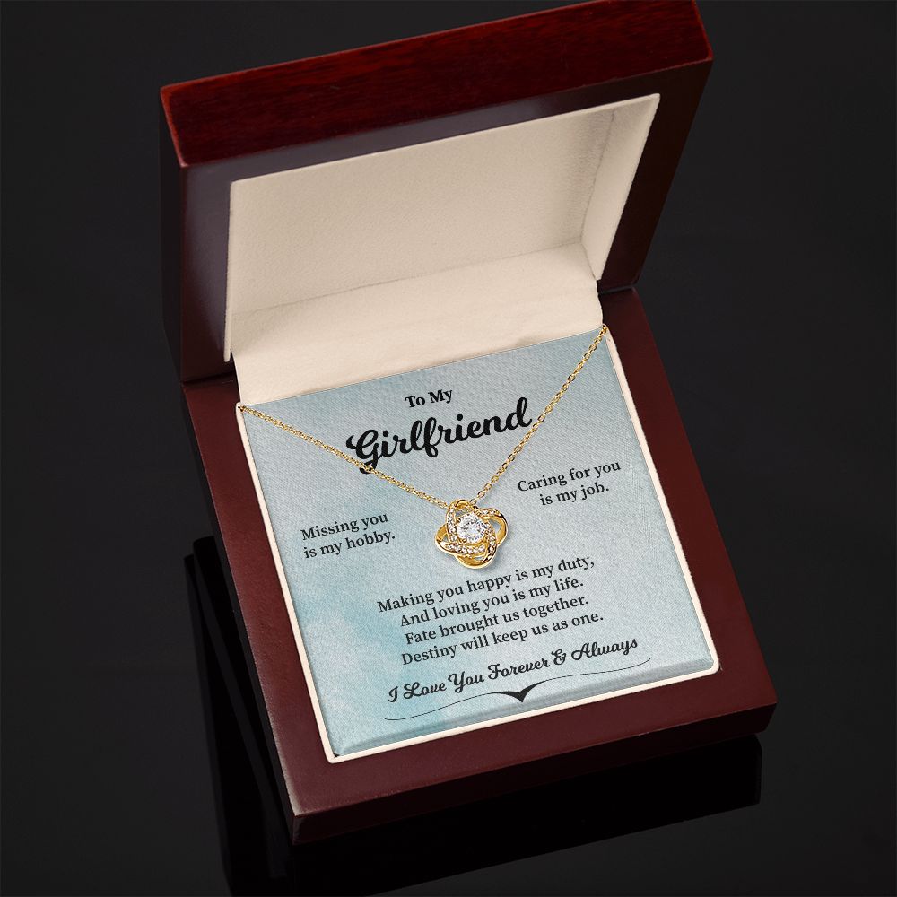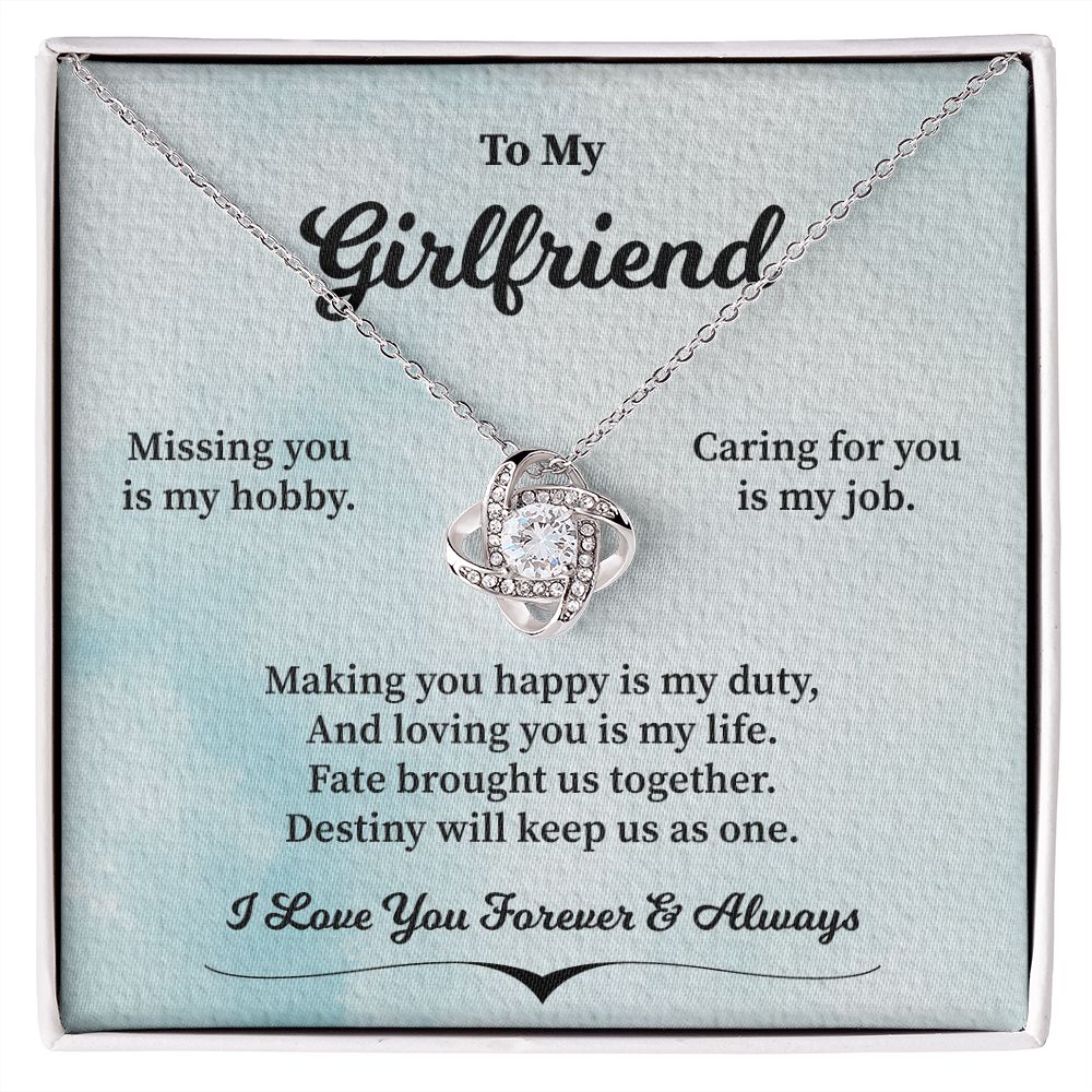 Imagine her reaction receiving this beautiful Love Knot Necklace. Representing an unbreakable bond between two souls, this piece features a beautiful pendant embellished with premium cubic zirconia crystals. Surprise your loved one with this gorgeous gift today!