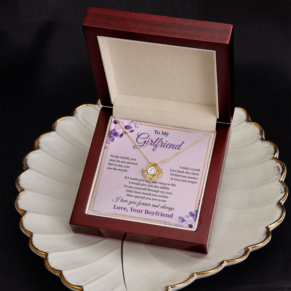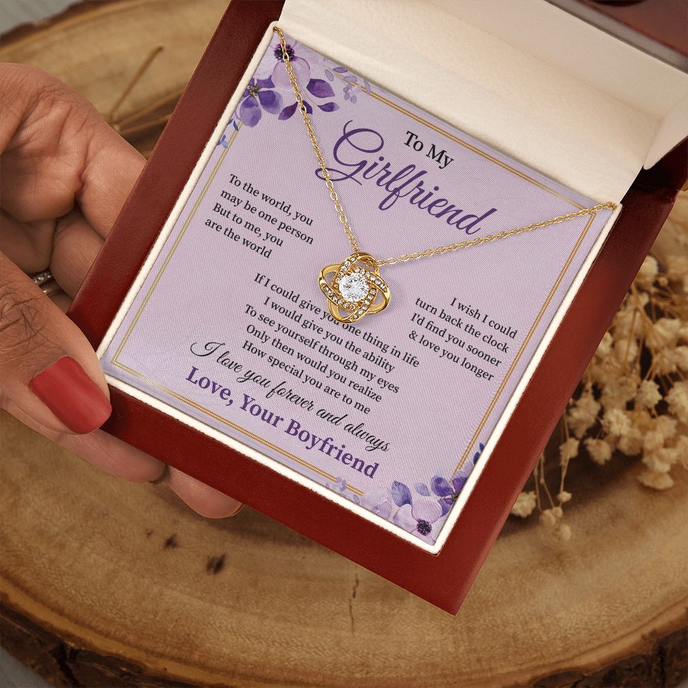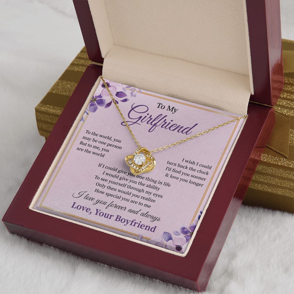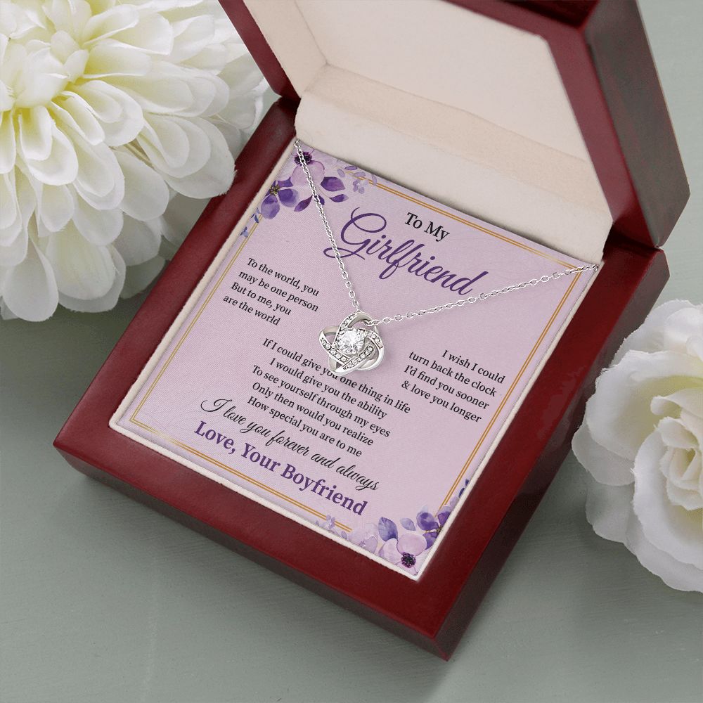 Imagine her reaction receiving this beautiful Love Knot Necklace. Representing an unbreakable bond between two souls, this piece features a beautiful pendant embellished with premium cubic zirconia crystals. Surprise your loved one with this gorgeous gift today!