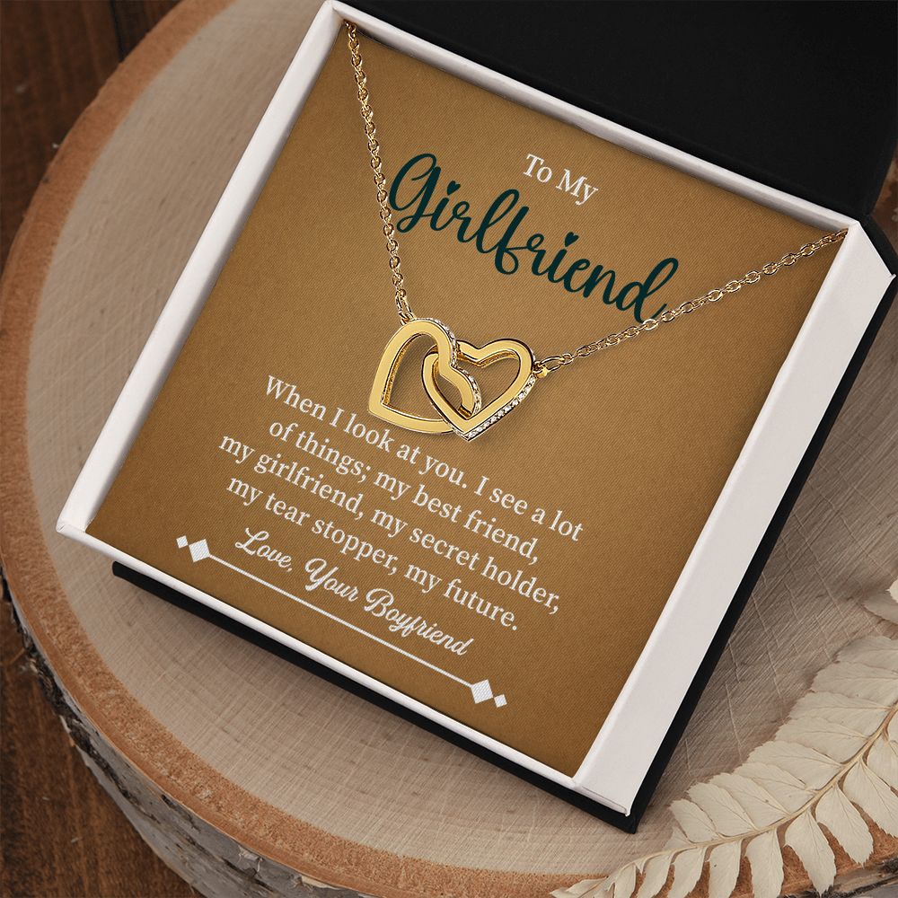 Give her the gift that symbolizes your never-ending love. Featuring two lovely hearts embellished with cubic zirconia crystals, this Interlocking Hearts necklace is the perfect accessory for everyday wear. Whether it's a memorable anniversary or a special birthday, make sure to dazzle your special someone by gifting them this stunning necklace.