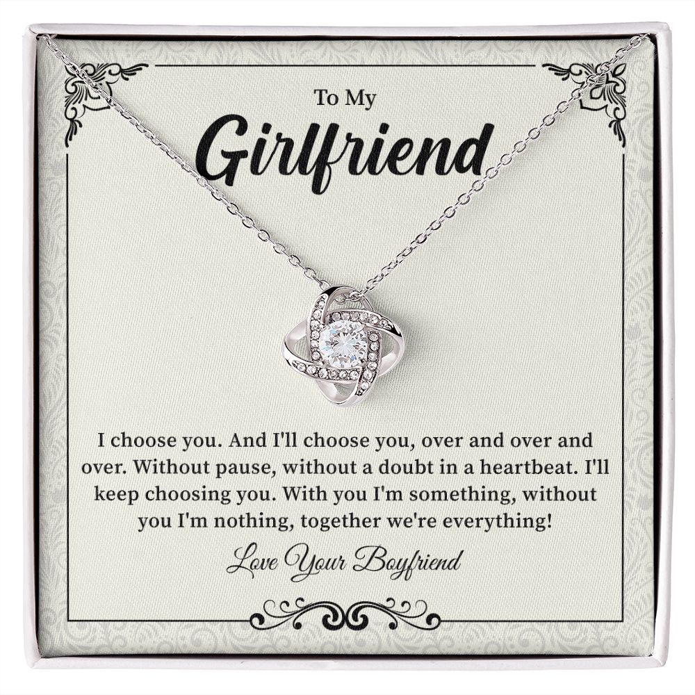 Imagine her reaction receiving this beautiful Love Knot Necklace. Representing an unbreakable bond between two souls, this piece features a beautiful pendant embellished with premium cubic zirconia crystals. Surprise your loved one with this gorgeous gift today!
