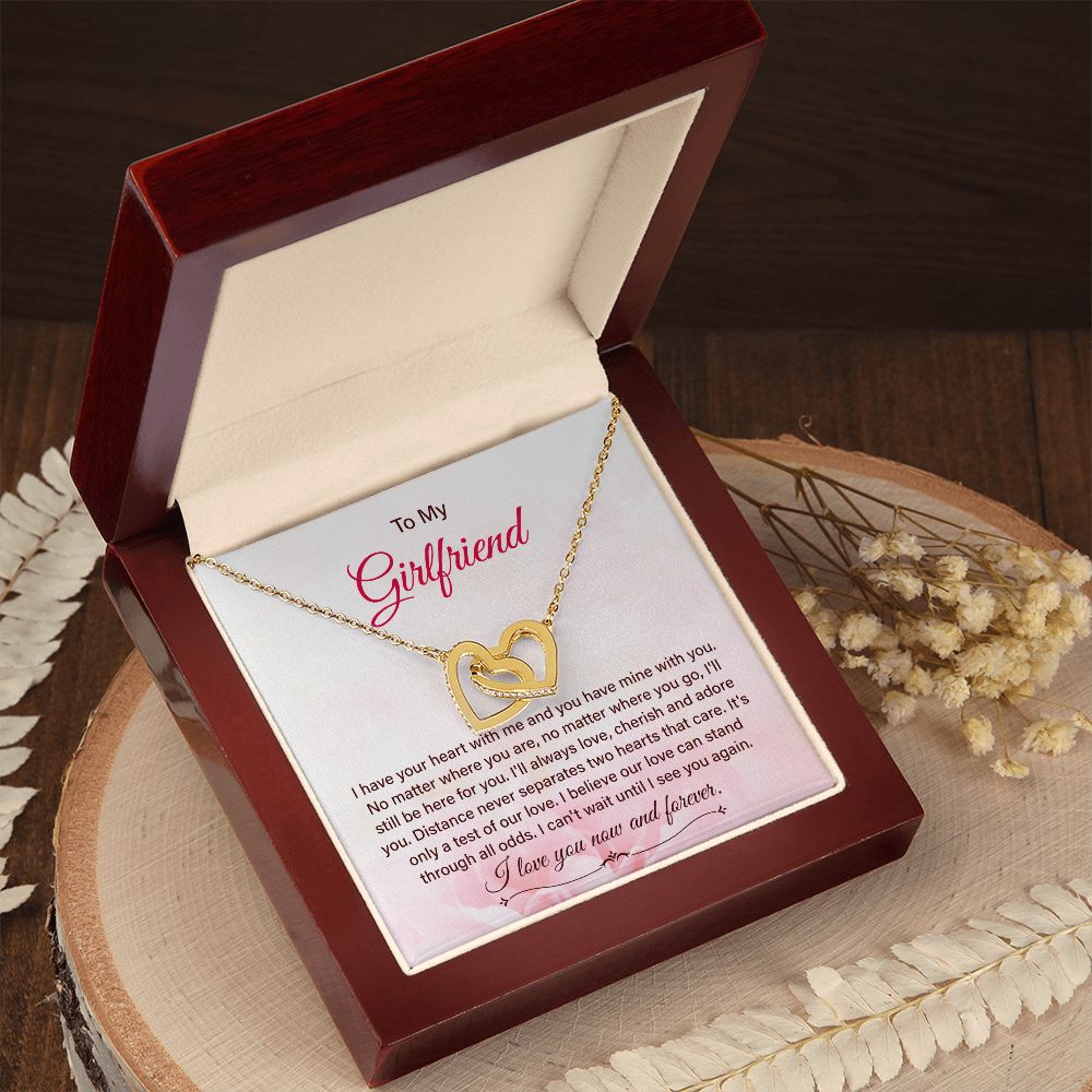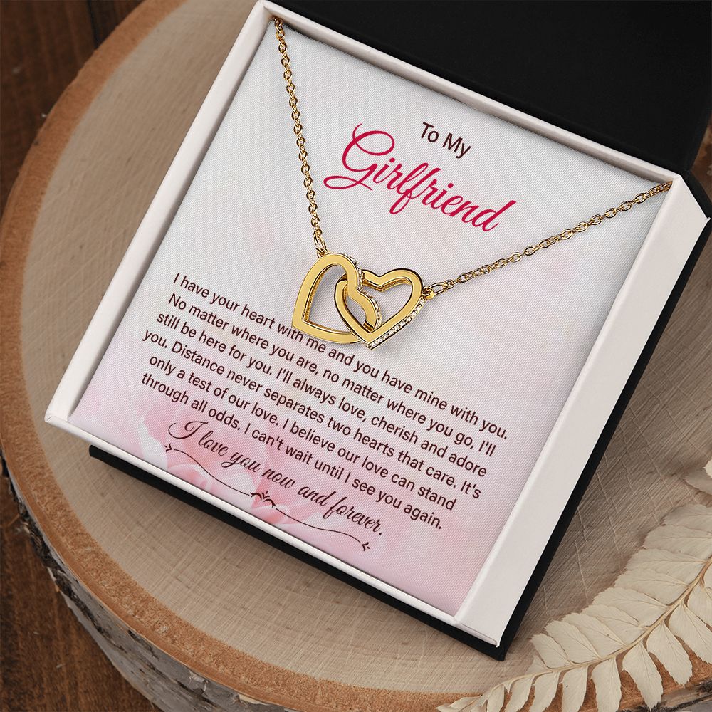 Give her the gift that symbolizes your never-ending love. Featuring two lovely hearts embellished with cubic zirconia crystals, this Interlocking Hearts necklace is the perfect accessory for everyday wear. Whether it's a memorable anniversary or a special birthday, make sure to dazzle your special someone by gifting them this stunning necklace.