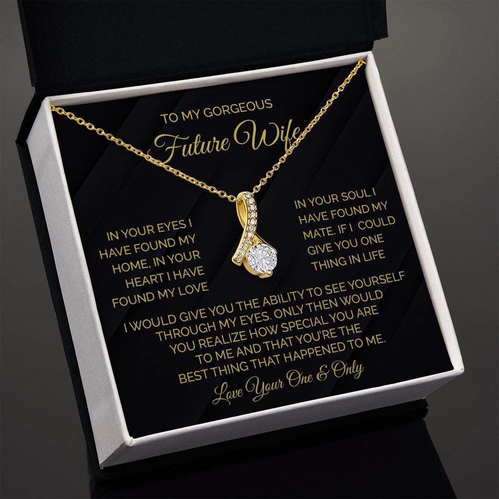 Imagine her reaction when she opens this stunning gift! The Alluring Beauty necklace features a petite ribbon shaped pendant that is sure to dazzle your special someone. Whether it's a birthday or anniversary, make sure to get her a gift she will love for years to come.