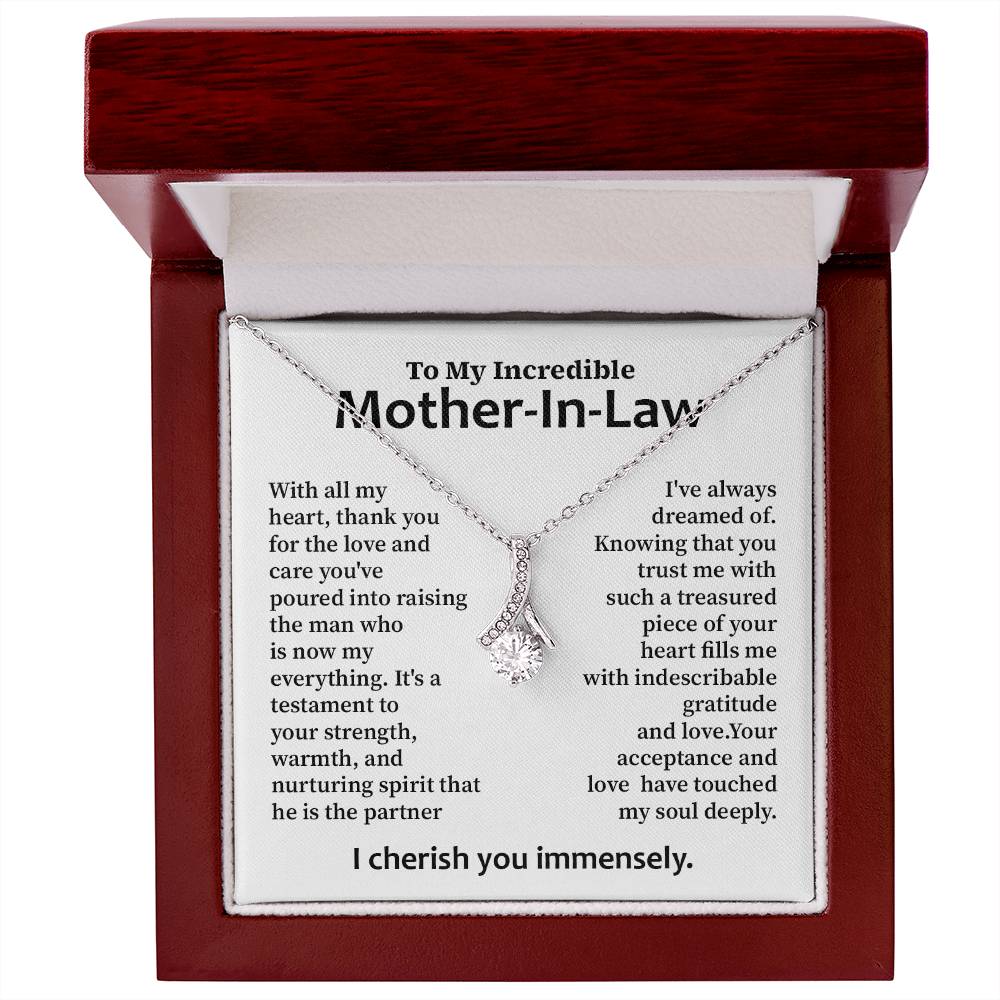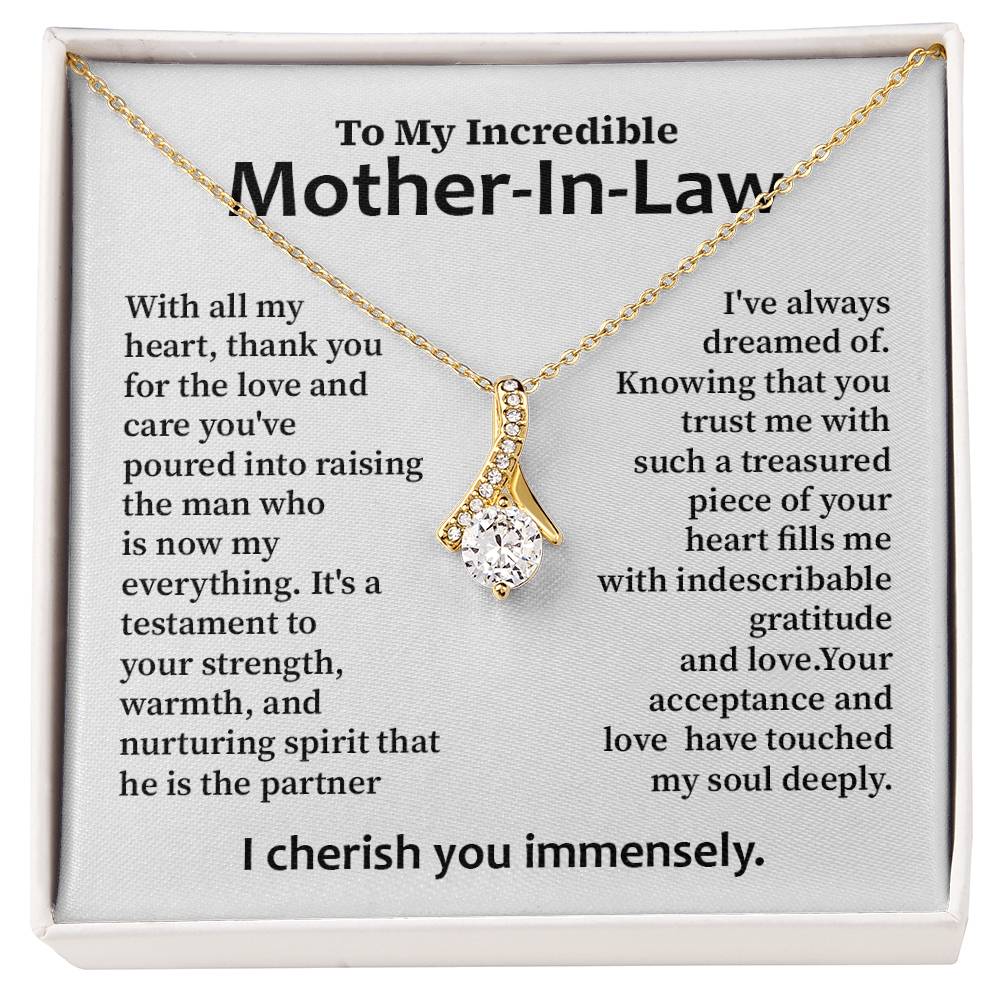 A great present to the amazing woman who brought up the love of your life. This beautiful necklace is a loving thanks to your mother-in-law for kindness, strength, and warmth of her acceptance.