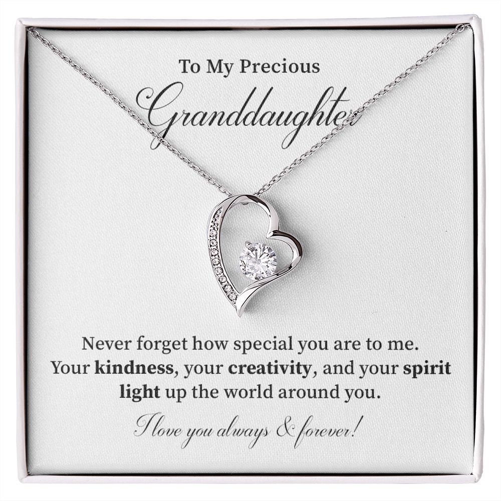 The dazzling Forever Love Necklace is sure to make her heart melt! This necklace features a stunning 6.5mm CZ crystal surrounded by a polished heart pendant embellished with smaller crystals to add extra sparkle and shine. Beautifully crafted with either a white gold or yellow gold finish, be sure to give her a classic gift she can enjoy everyday.