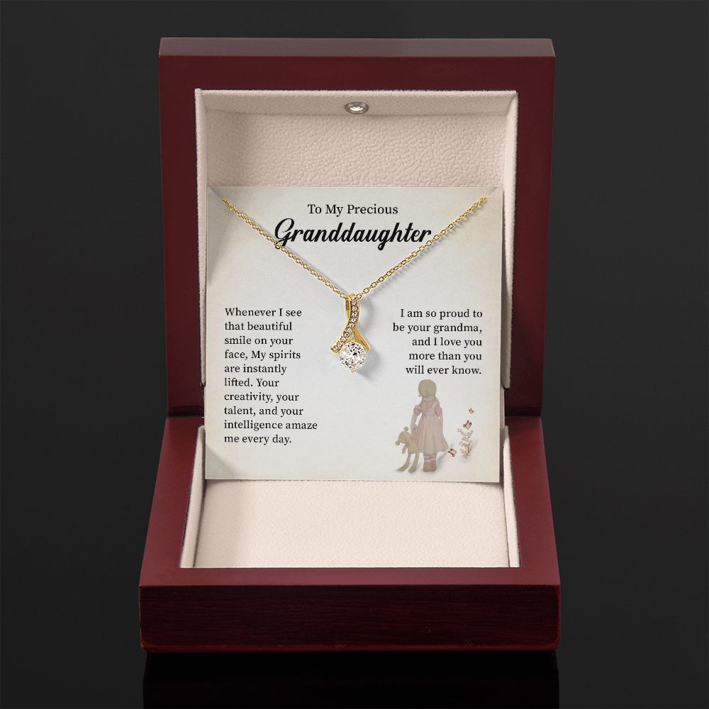 Imagine her reaction when she opens this stunning gift! The Alluring Beauty necklace features a petite ribbon shaped pendant that is sure to dazzle your special someone. Whether it's a birthday or anniversary, make sure to get her a gift she will love for years to come.