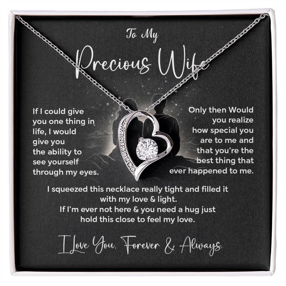 Give your wife a romantic necklace that will show that you love and appreciate her. The lovely heart-shaped pendant comes with a moving message card- a memorable gift to your lovely wife on anniversaries, Valentines Day, birthday or any other day.