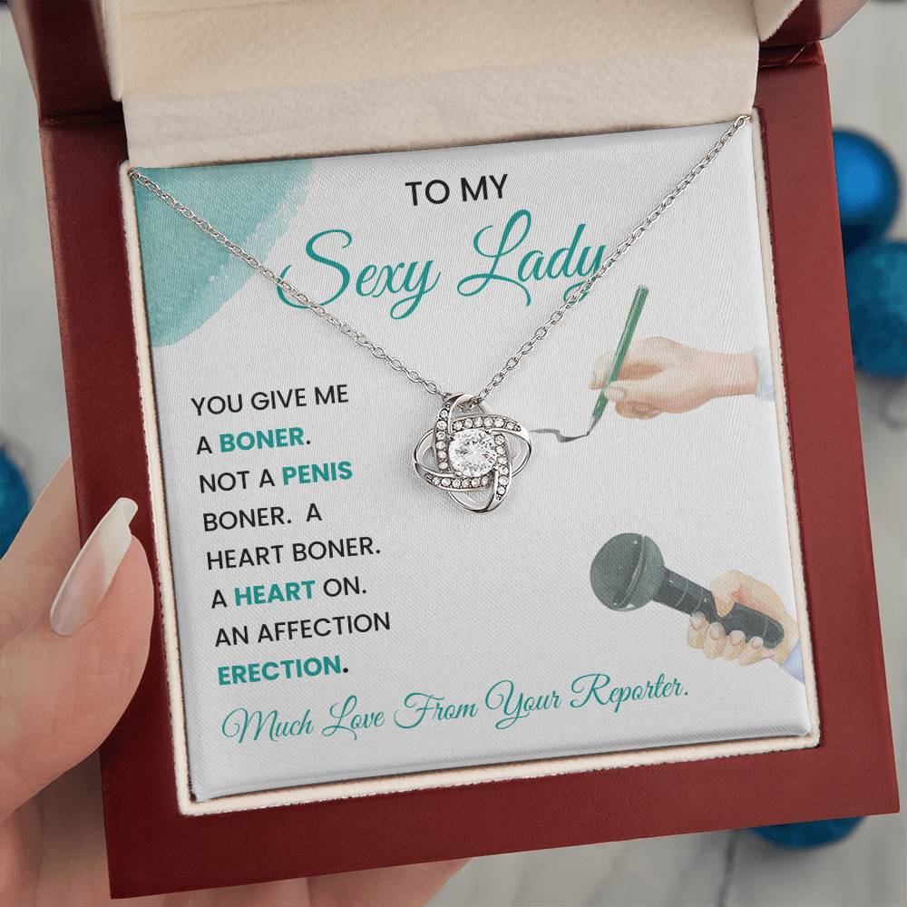 Be a headline in her heart with this witty and naughty necklace gift by a reporter. The ideal combination of sass and sweetness, this song is bound to make her laugh and feel loved. Perfect to surprise somebody with romance, a birthday gift or simply because you feel like being funny.