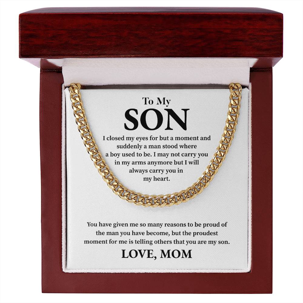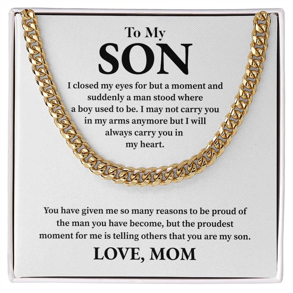 To My Son Cuban Chain – Mom to Son Necklace with Message Card Gift Box