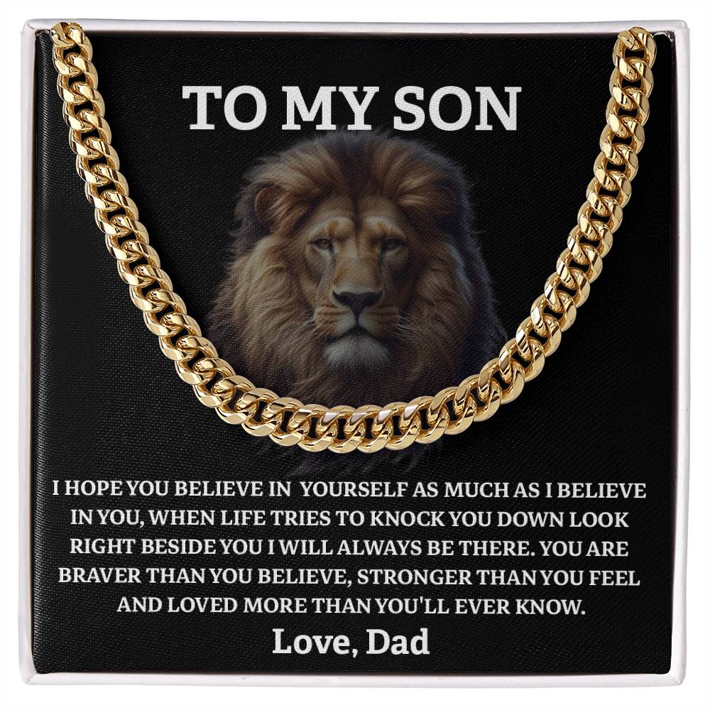 Give your son a gift that roars of pride and courage. This Cuban chain necklace is accompanied by a loud lion and a touching message card by Dad- the best way to celebrate his power, invincibility, and value.
