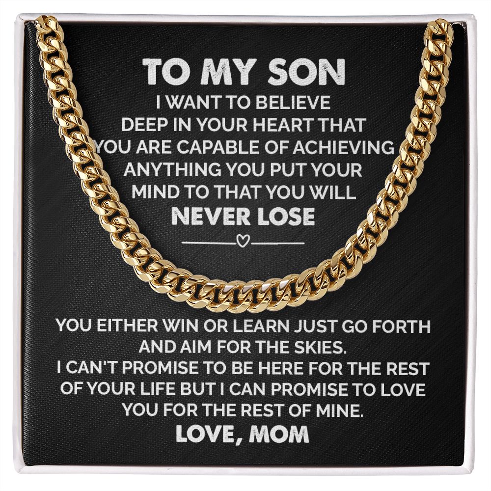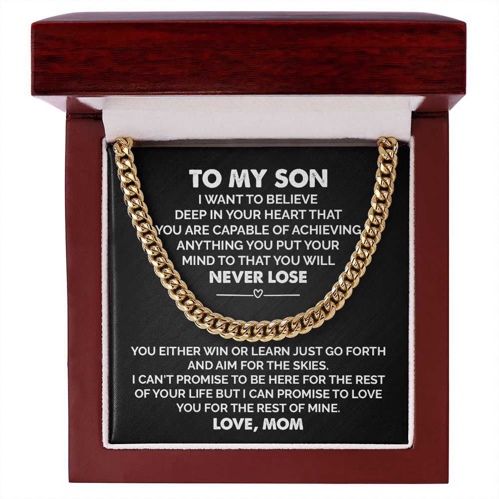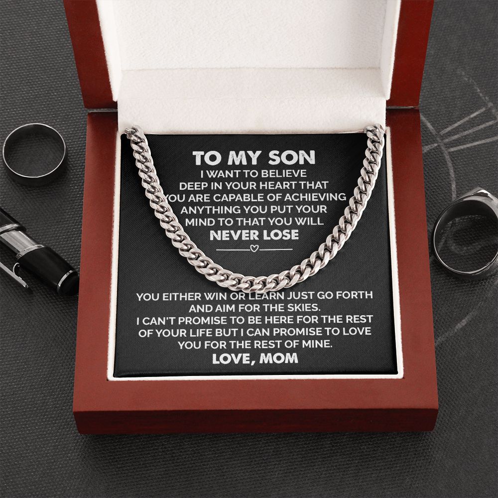 To My Son I Want To Believe Deep In Your Heart, Birthday Christmas Gifts For Him Stainless Steel Cuban Link Chain For Man