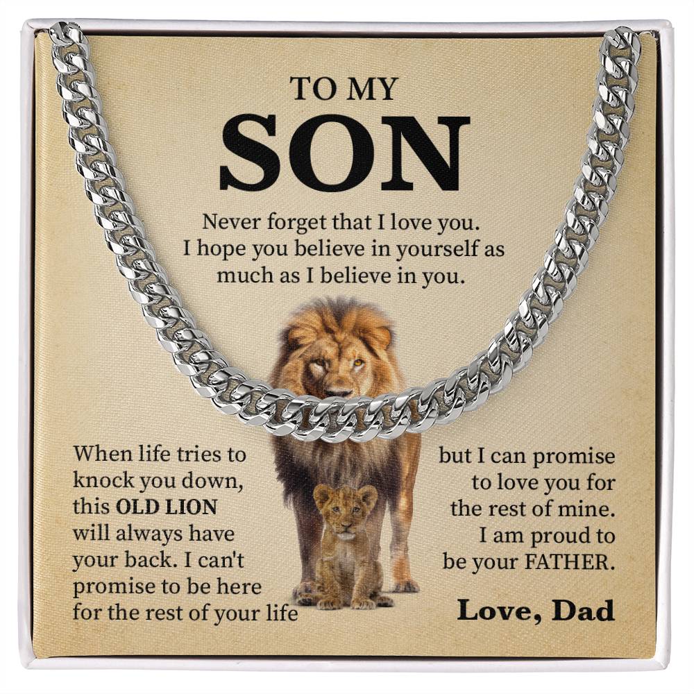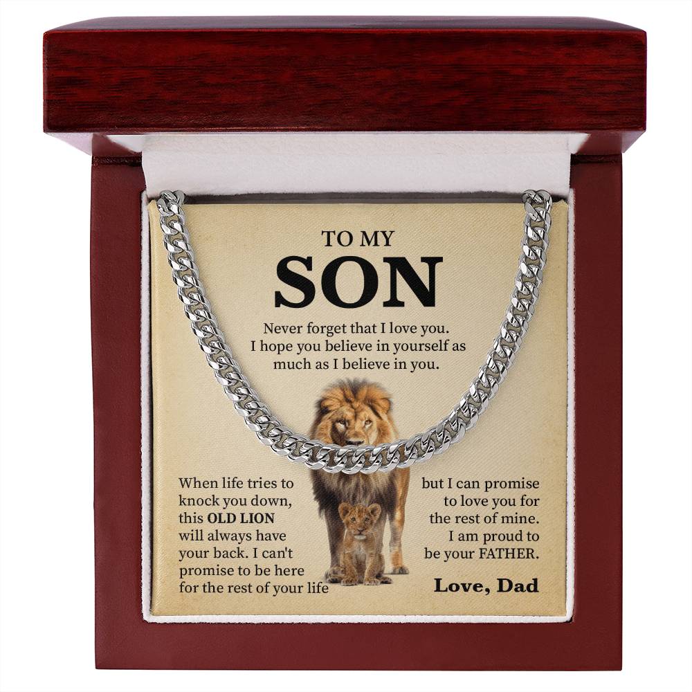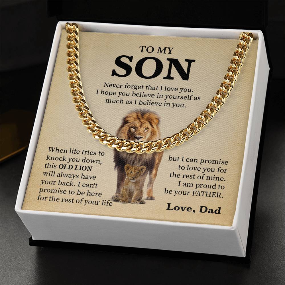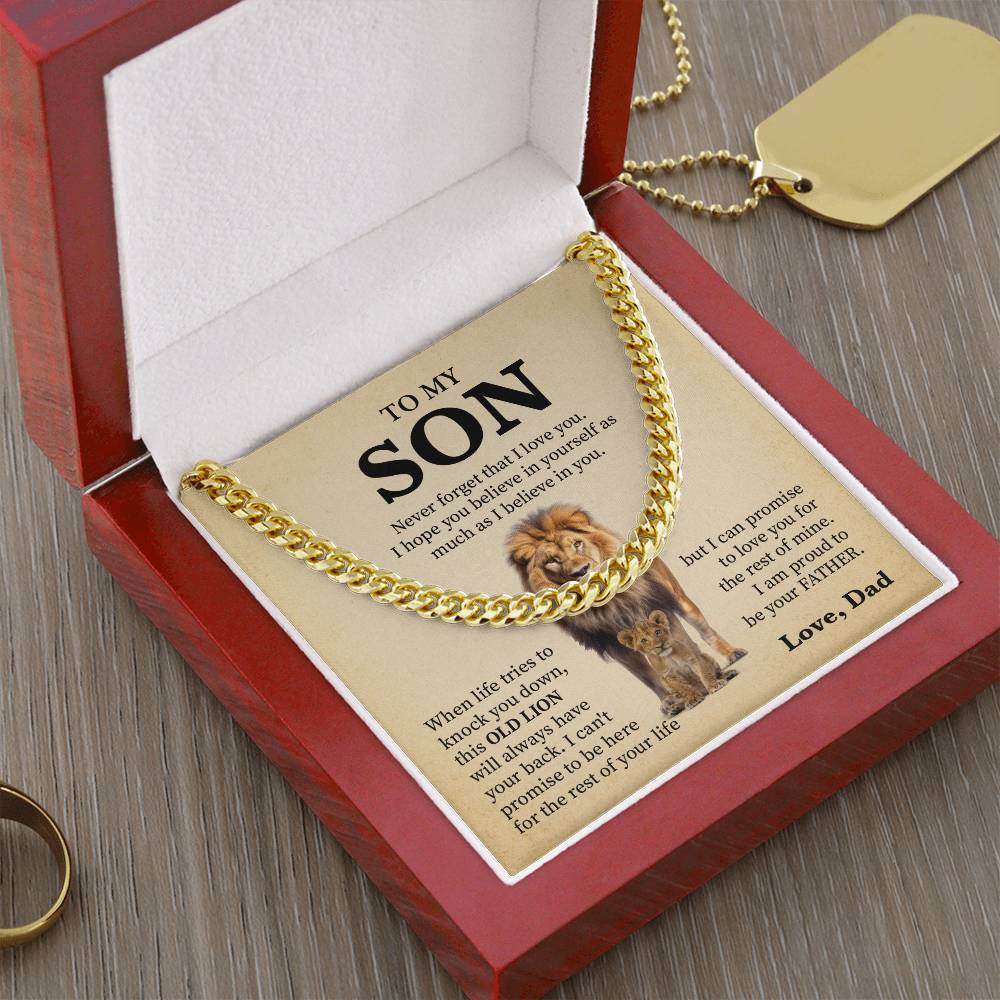 This strong lion-themed necklace presents your son a memorable reminder of your strength, love, and guidance. This Cuban chain necklace is created especially for sons who are becoming strong and confident men, and it comes with a big message card written by Dad that comes straight to the heart.