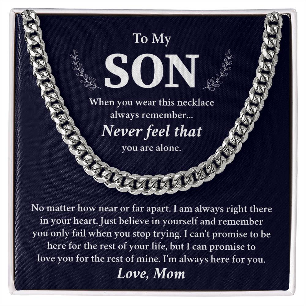 Son Gift from Mom – Cuban Chain Necklace with Emotional Card