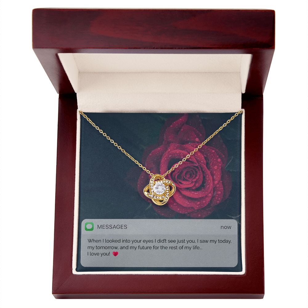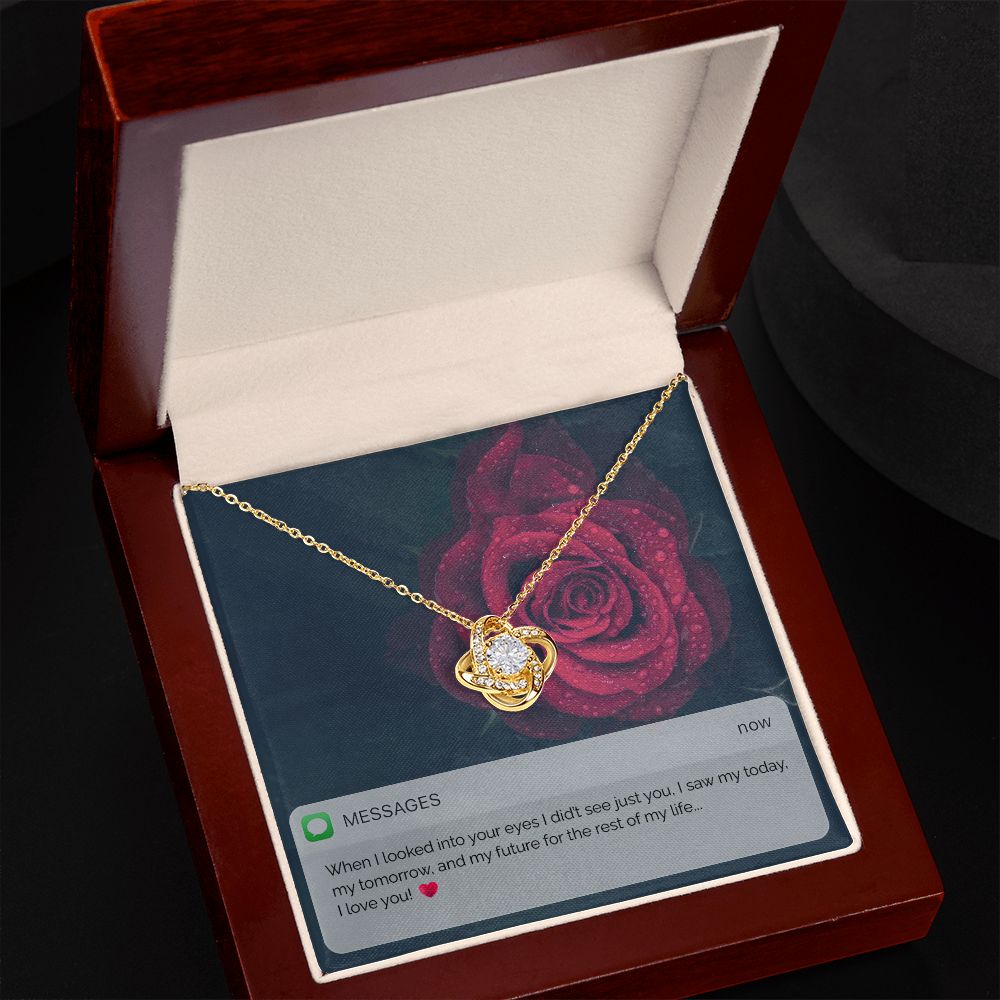 Imagine her reaction receiving this beautiful Love Knot Necklace. Representing an unbreakable bond between two souls, this piece features a beautiful pendant embellished with premium cubic zirconia crystals. Surprise your loved one with this gorgeous gift today!
