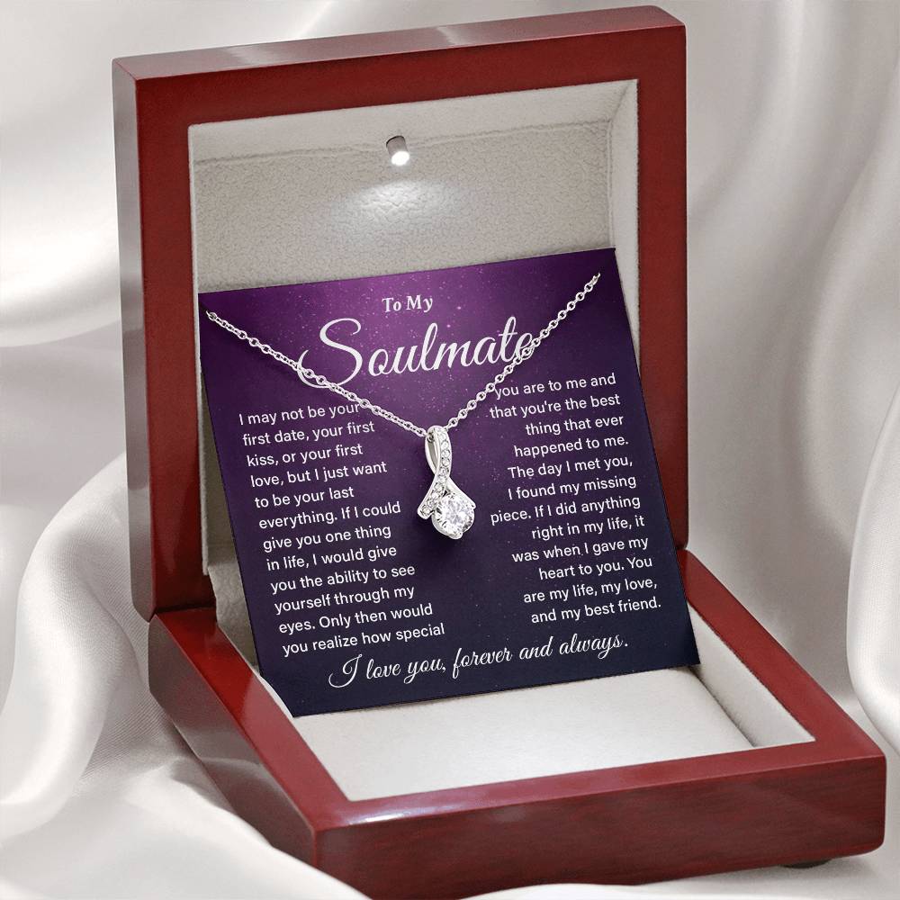 Mark your lifetime and everlasting love with this beautiful Love Knot Necklace to your soulmate. This necklace is a romantic gift with a touching message on the purple galaxy card, which makes it a great gift on anniversaries, birthdays or simply because you love her.