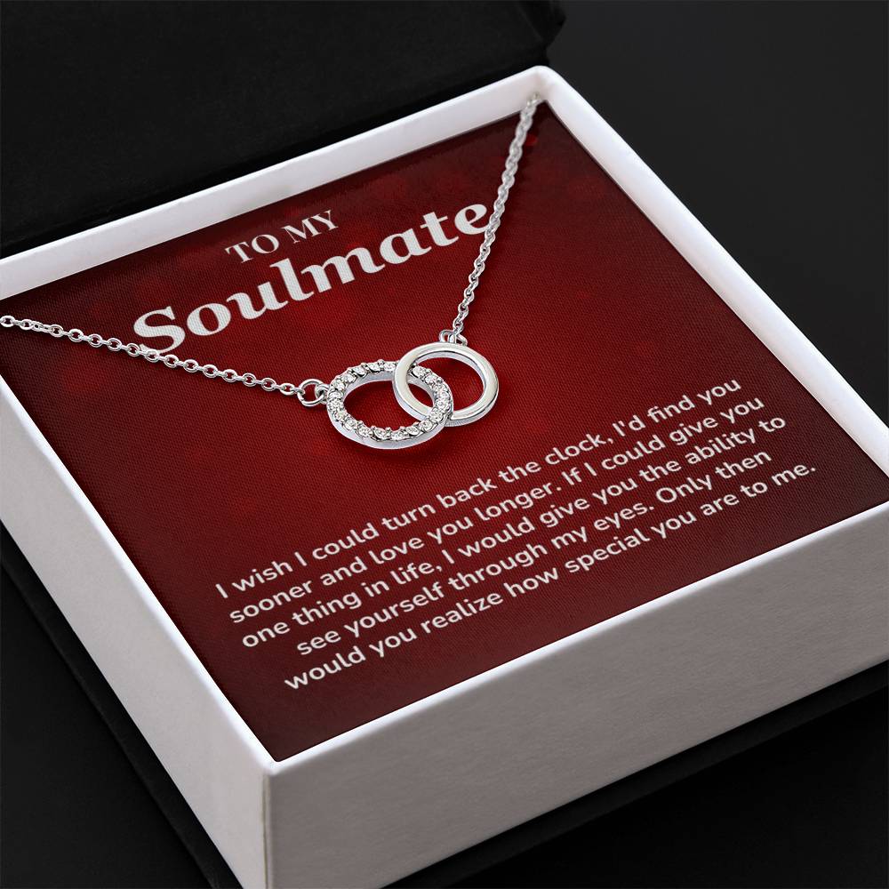 Amaze your loved one with this beautiful interlocking circles necklace to show how you are connected forever in love. This jewelry item is an ideal romantic gift to give on anniversaries, Valentine Day or just because it is a heartwarming love message printed on a red gift card.