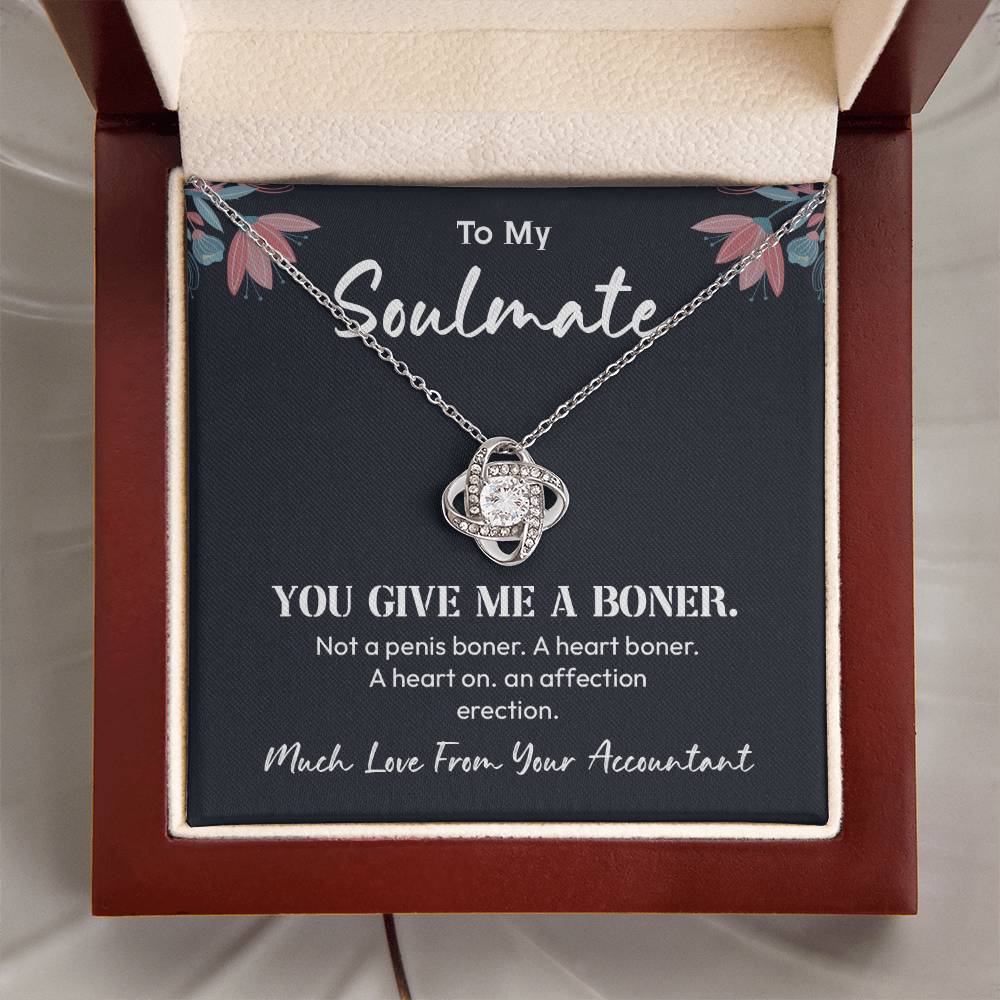 Want to make the books of love balanced with a dash of humor? This Love Knot necklace and cheeky message card is the ideal present an accountant can give to his or her soulmate. Perfect for a birthday, anniversary, or during Valentine Day, it is a humorous phrase that can be used to say, You are the only deduction I need.