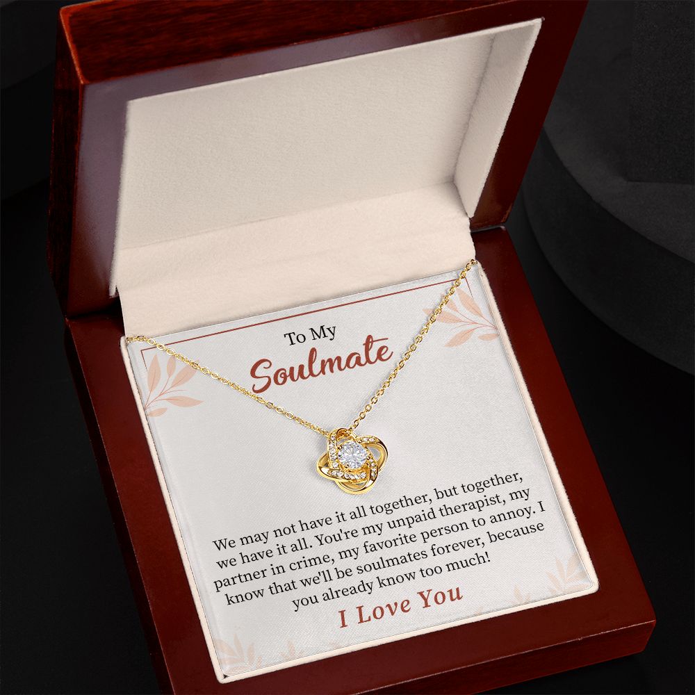 Imagine her reaction receiving this beautiful Love Knot Necklace. Representing an unbreakable bond between two souls, this piece features a beautiful pendant embellished with premium cubic zirconia crystals. Surprise your loved one with this gorgeous gift today!