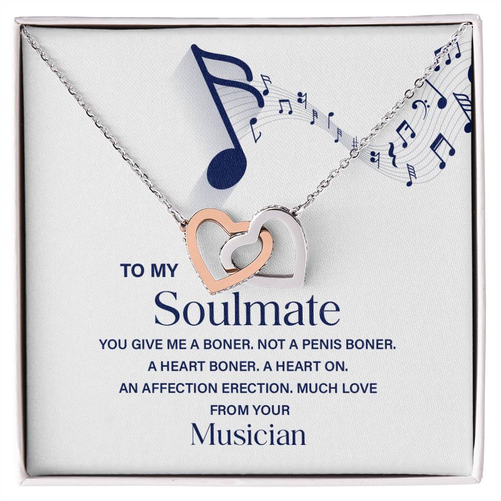 This is a funny and warm-hearted necklace that a musician can give to his/her soul mate as a gag gift. With musical notes and an uproariously loving message card, it is a perfect gift to music lovers who want romance with a touch of humor.