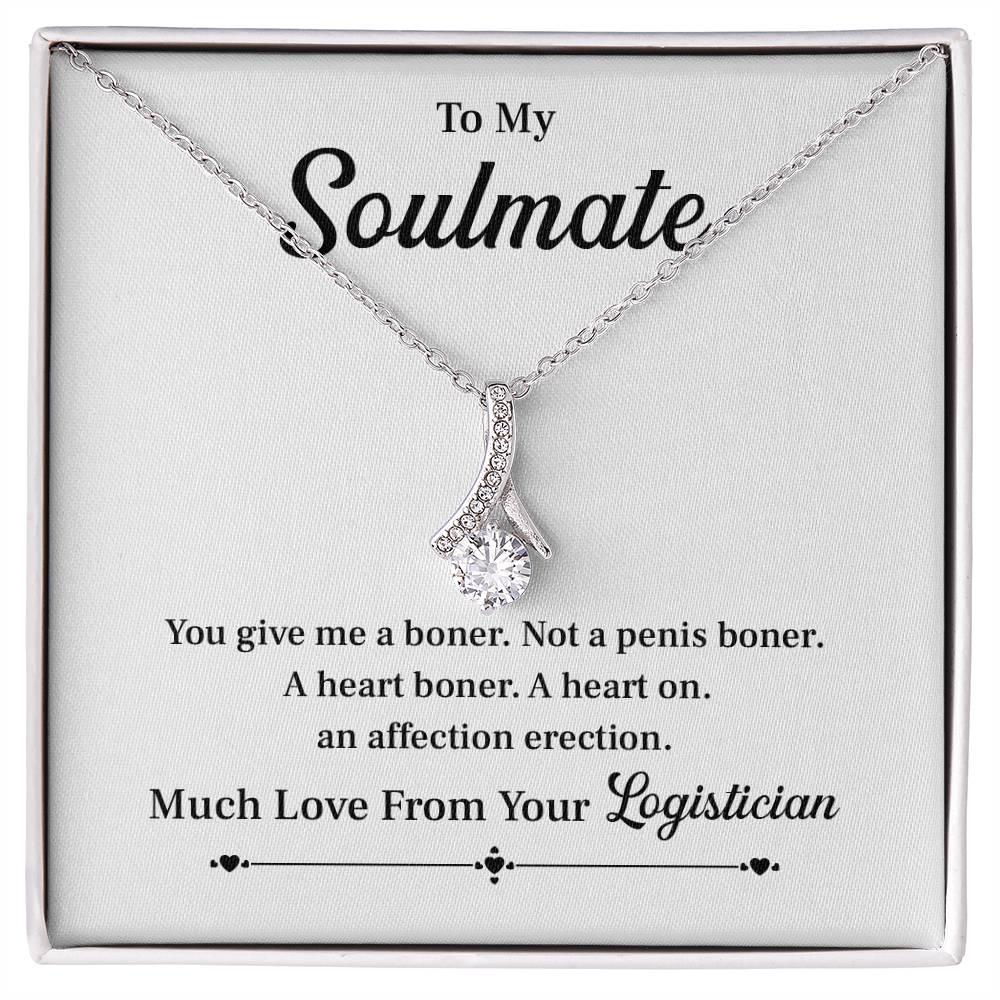 Love beats logic with this memorable necklace present of a dedicated logician. Be it birthday, anniversary, or because, this romantic keepsake combines intelligence and love with a brash message card that is bound to get a laugh.