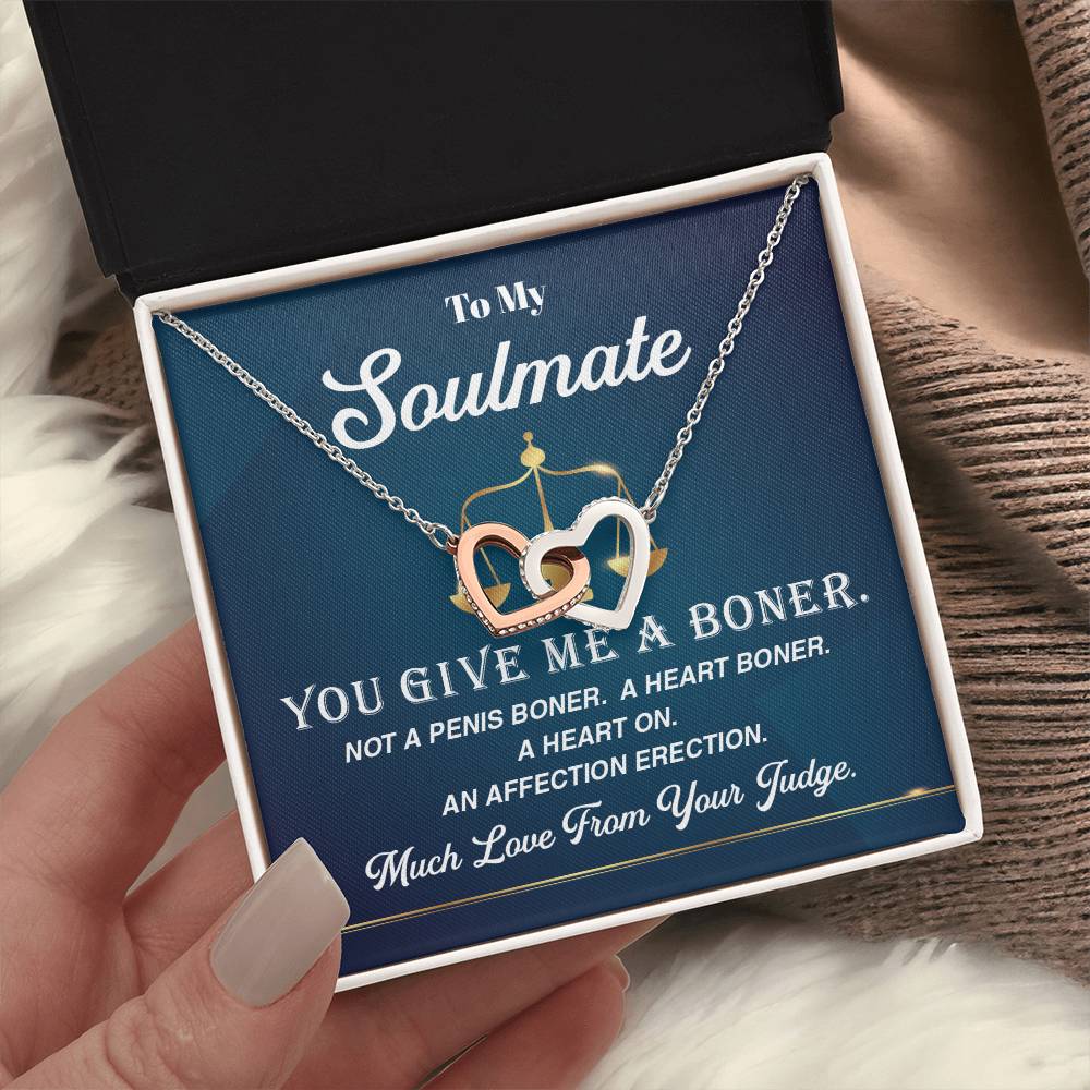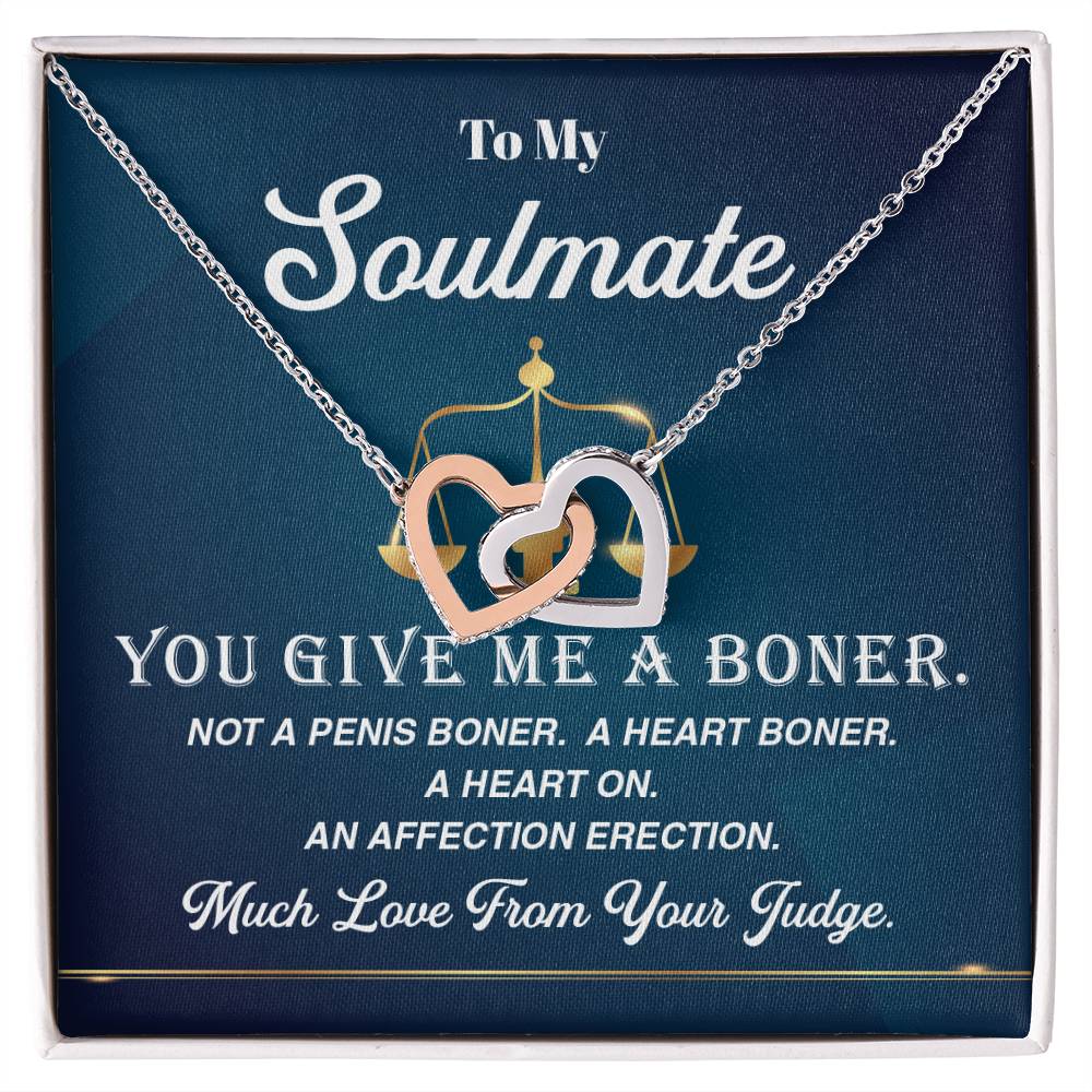 Looking to find the right combination of humor and romance between a judge and his/her soul mate? The necklace comes with a strong message card that is a playful laying down of the law of love. An excellent birthday, anniversary or surprise love present.