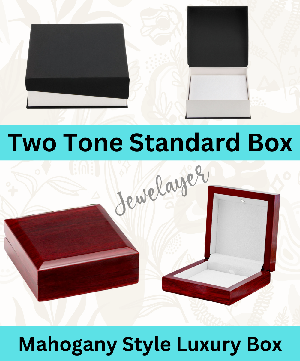 Your piece is lovingly packaged in a complimentary soft touch box for easy gifting. Elevate your presentation by upgrading to the mahogany style luxury box, which features a brilliant LED spotlight.