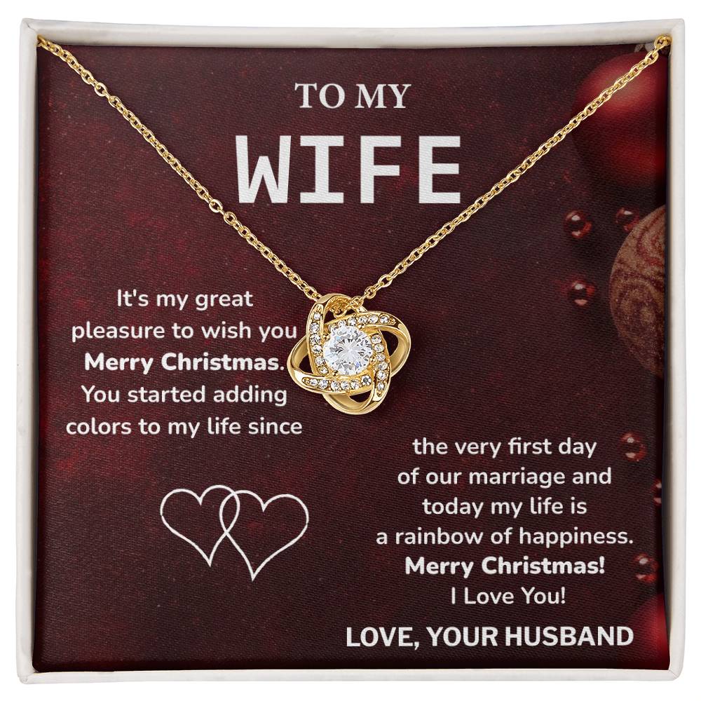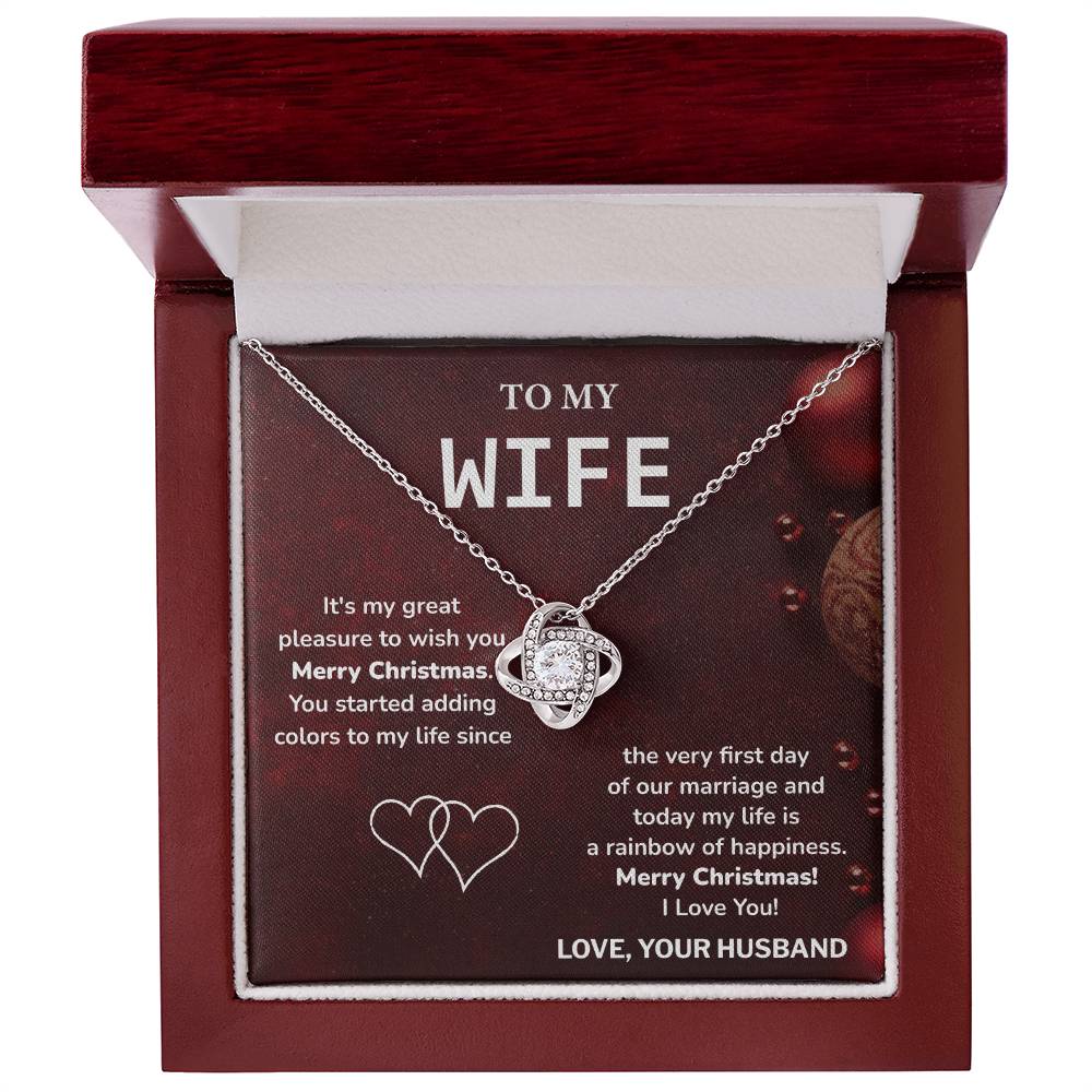 Give your wife a beautiful Love Knot necklace this Christmas and make this Christmas memorable with a beautiful necklace that depicts your everlasting love. This luxurious present is ideal when accompanied by a touching holiday message on a festive red card to wives that need to feel special.