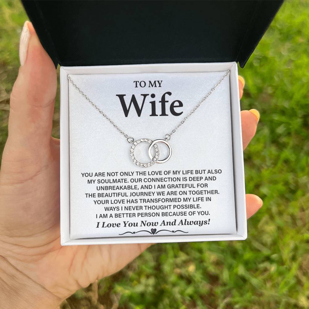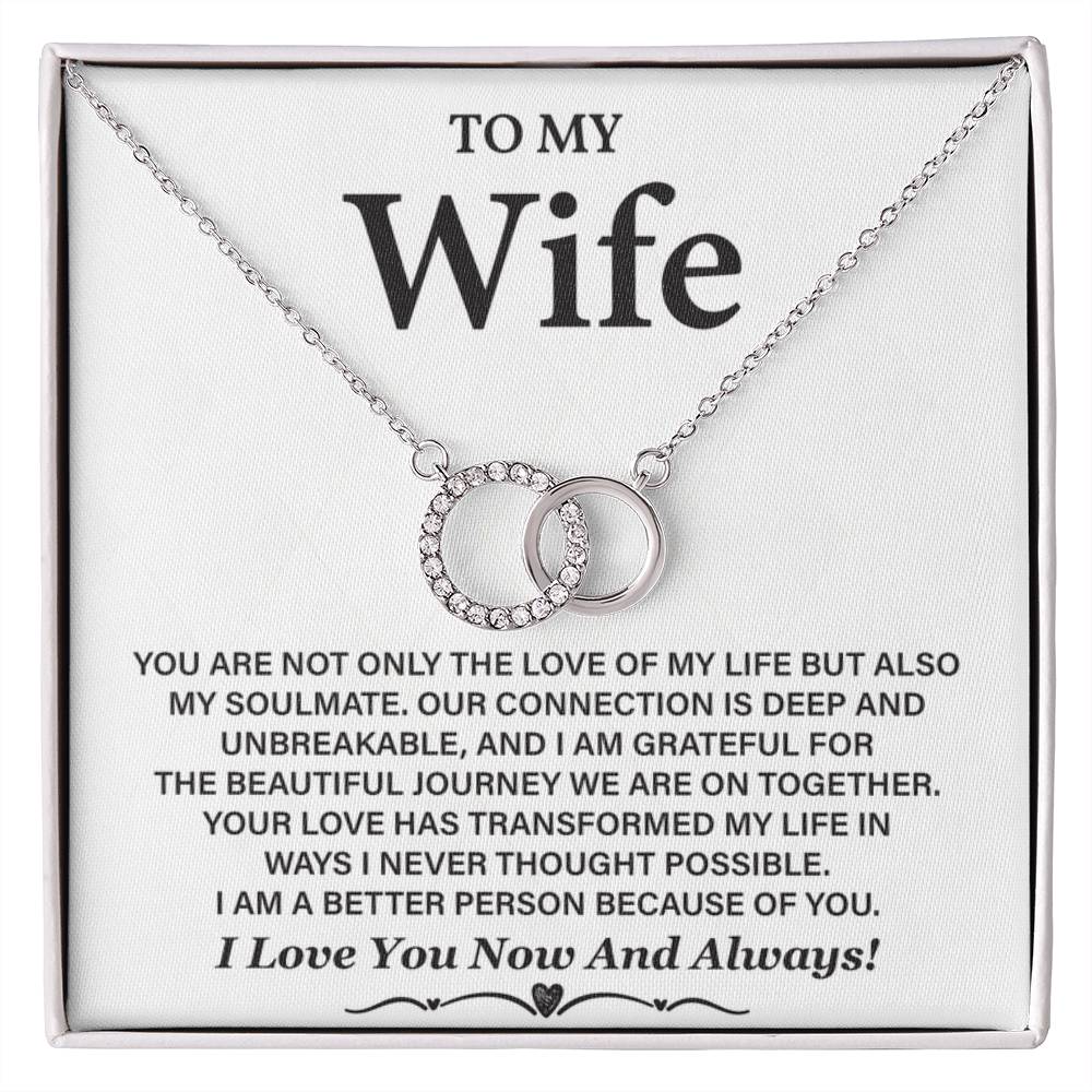 Show your infinite love with this classy interlocking circles necklace, an ideal present to your wife. It could be your anniversary, birthday, or any other reason, but this romantic jewelry item with a loving message card will help to celebrate the strong soulmate bond that you have.