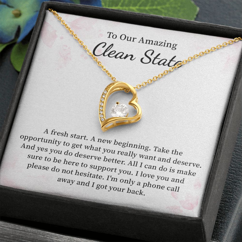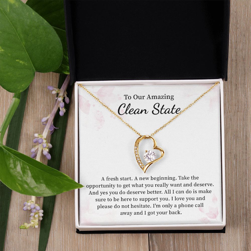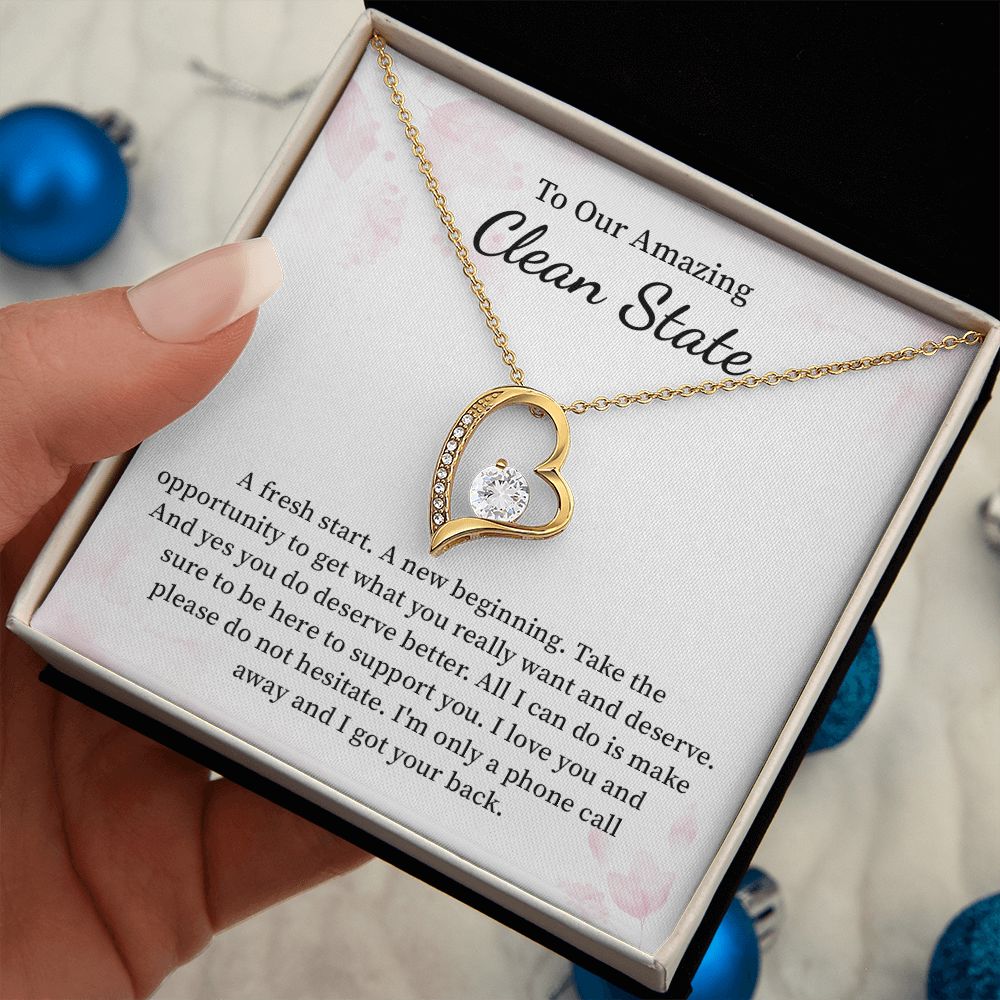 The dazzling Forever Love Necklace is sure to make her heart melt! This necklace features a stunning 6.5mm CZ crystal surrounded by a polished heart pendant embellished with smaller crystals to add extra sparkle and shine. Beautifully crafted with either a white gold or yellow gold finish, be sure to give her a classic gift she can enjoy everyday.