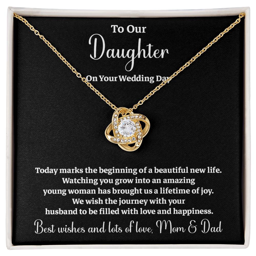 With a touching gift, mom and dad can celebrate the wedding of their daughter. This beautiful necklace comes in a commemorative box with a heartwarming message that remembers this memorable milestone. It is a great wedding present that she will keep in her mind.