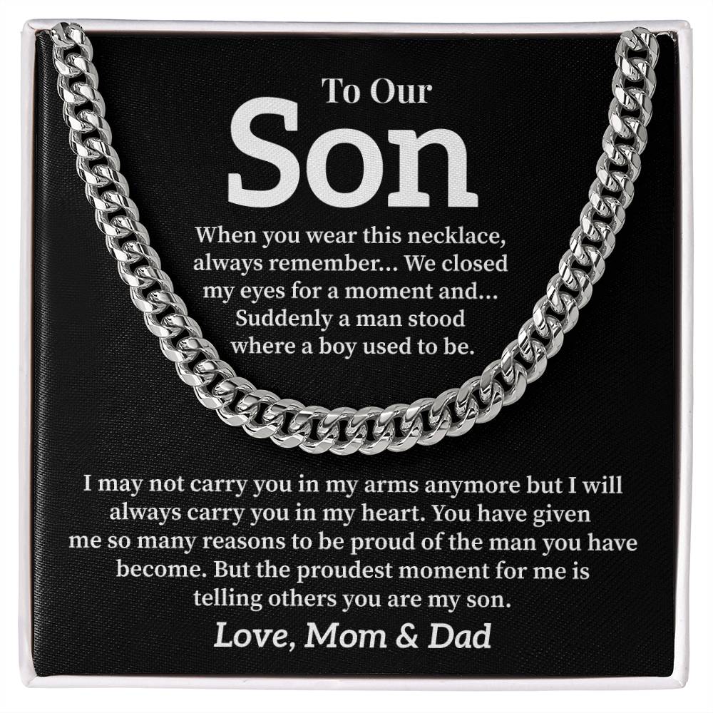 Gift Necklace for Son from Mom and Dad – Sentimental Message Card