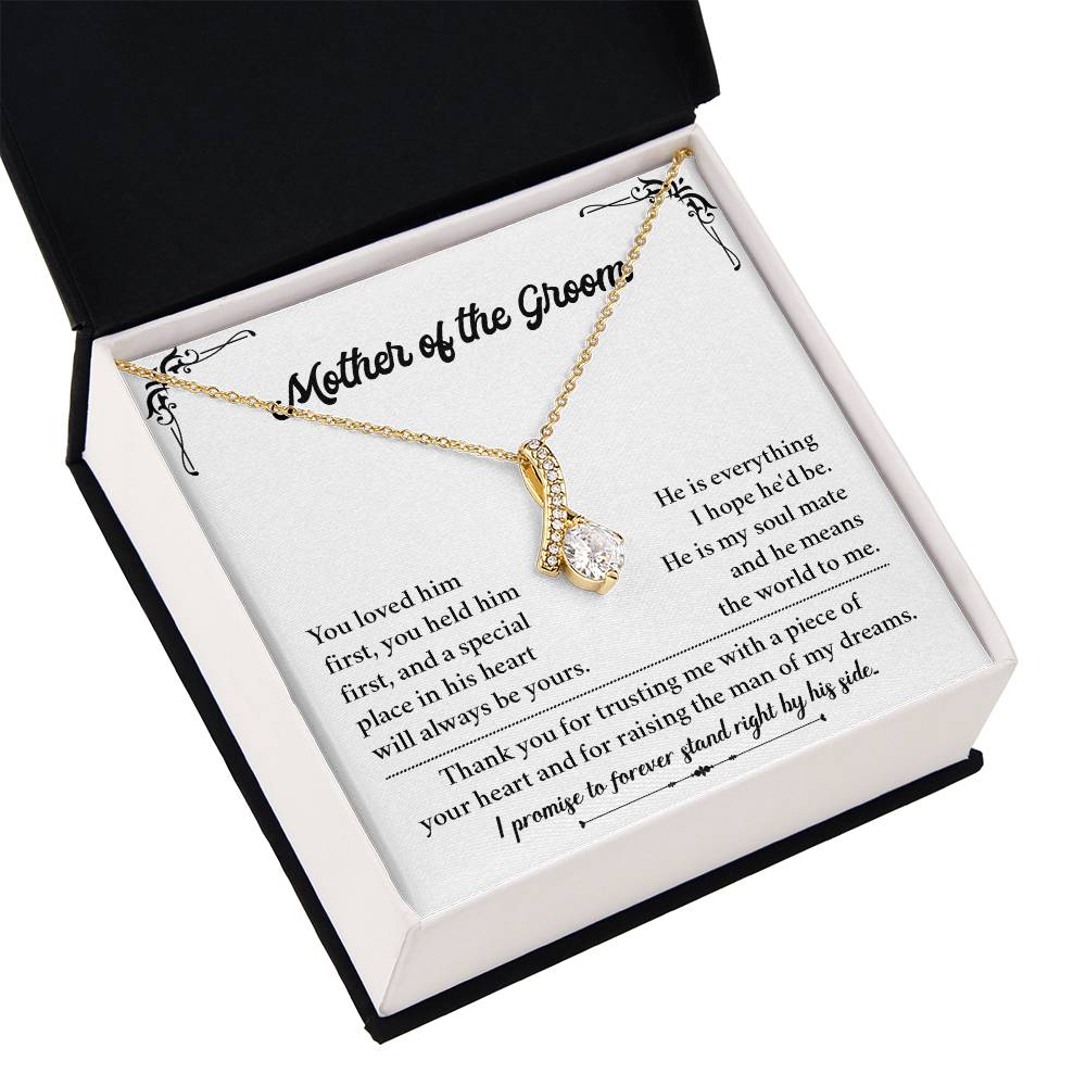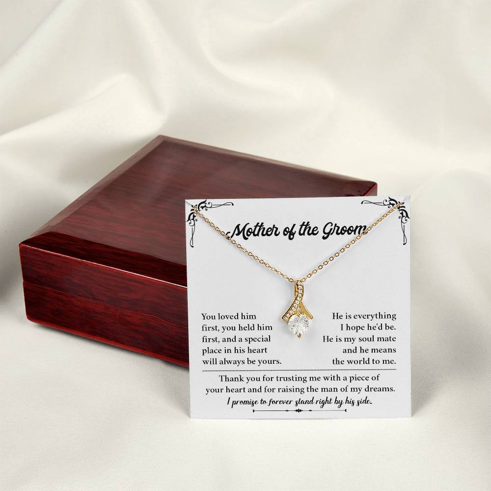 If you’re giving a gift to your mother-in-law on your wedding day or looking for a special present from bride to groom’s mom, this necklace and message card combo expresses the moment with style. A wonderful wedding jewelry gift for the groom’s mother, it honors love, gratitude and the beginning of a lasting relationship.