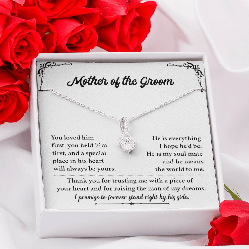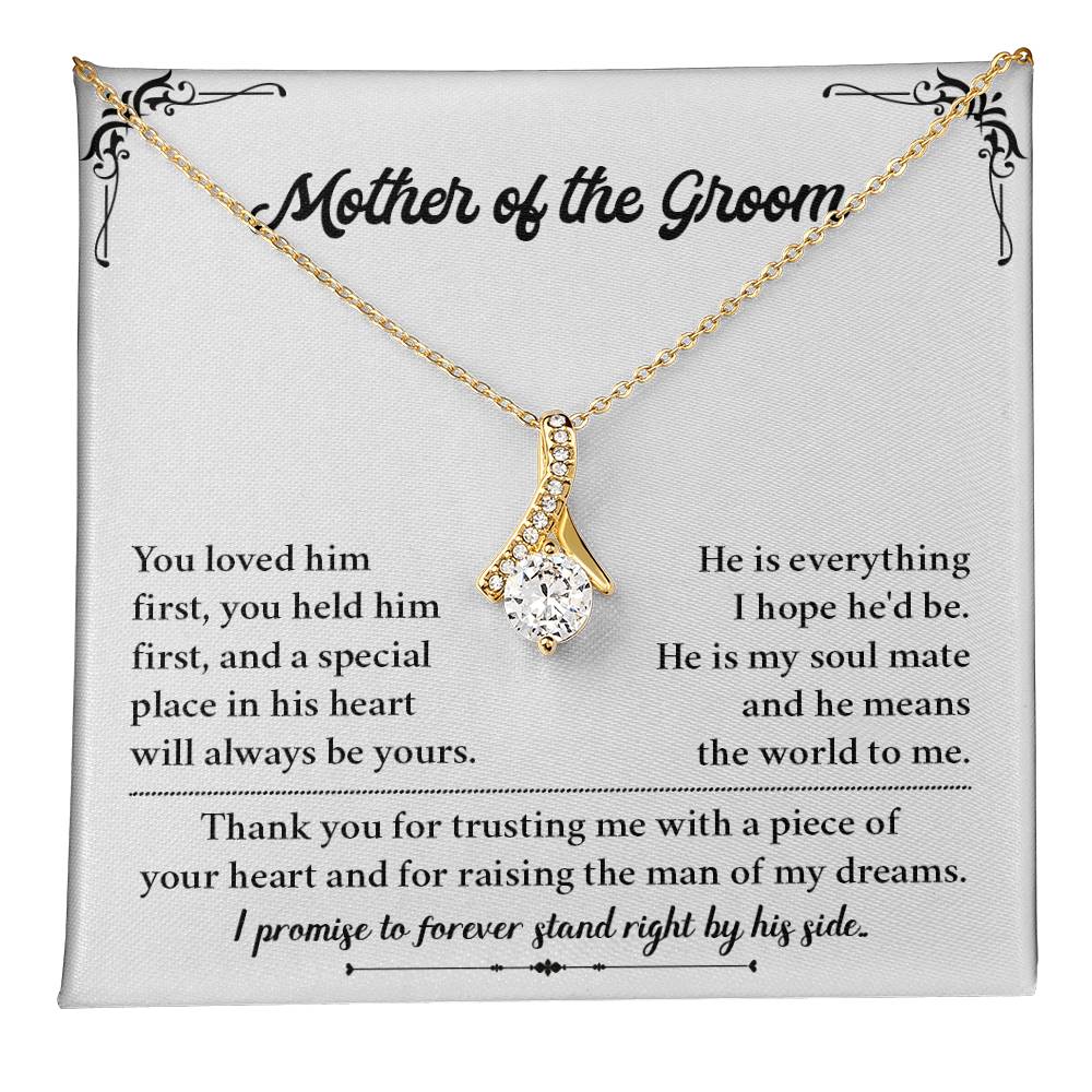 Let the mother of the groom feel special with this beautiful necklace gift presented by the bride on the wedding day. The heart-shaped pendant is made with elegance and gratitude and comes with a meaningful message card, allowing you to honor the woman who raised your loved one. Great as a gift for a wedding, a bridal thank you or a keepsake for the groom’s mom.