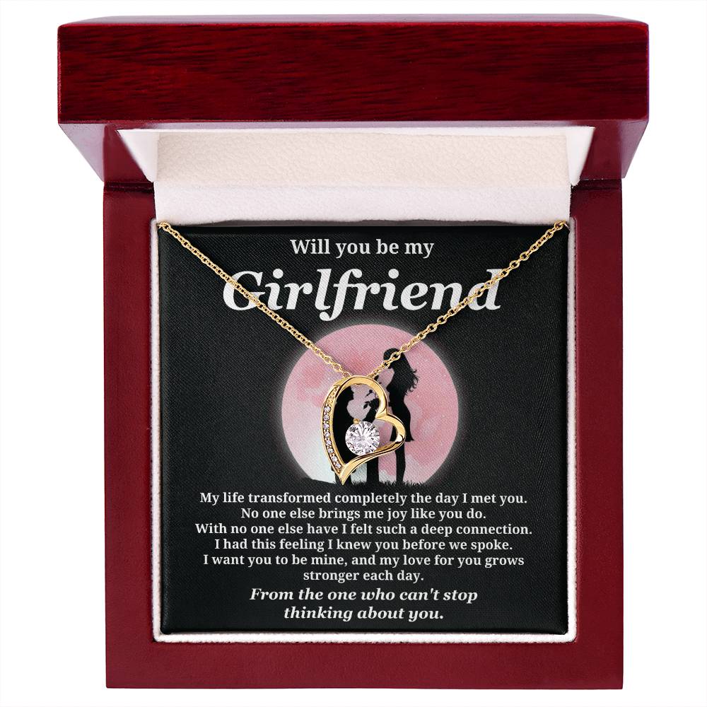 The time has come to transform a special moment into enduring memories. A sparkling heart pendant necklace with an accompanying romantic message card and moonlit design stands as the ideal present to propose your girlfriend to the person who has been on your mind.